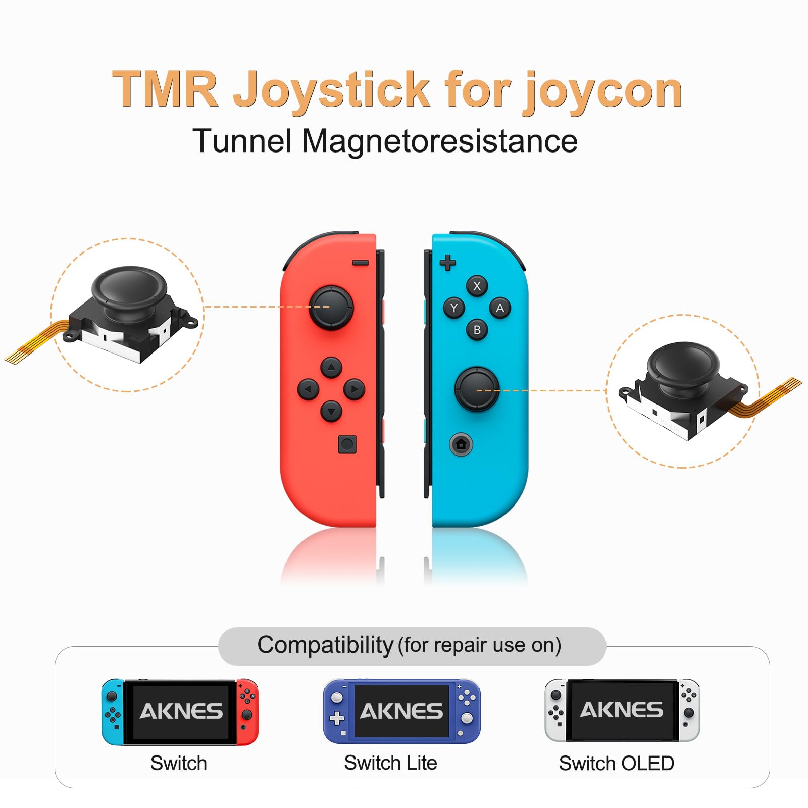 - Q: What is the AKNES Switch JoyCon Joystick Replacement kit? A: The AKNES Switch JoyCon Joystick Replacement kit includes TMR (Tunnel Magnetoresistance) joystick modules designed to replace and upgrade the original joysticks in Nintendo Switch, Switch OLED, and Switch Lite consoles, providing a drift-free experience.