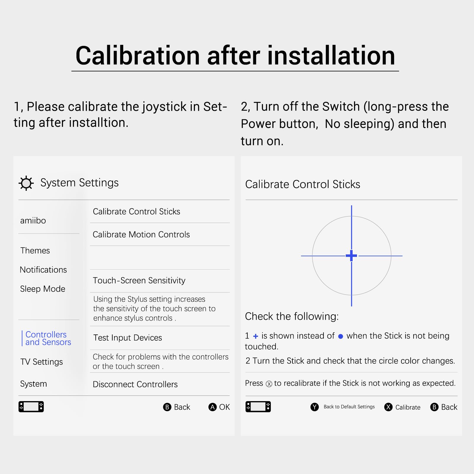 - Q: Do I need to calibrate the joystick after installation? A: Yes, after installation, you should calibrate the joystick through the Switch system settings. Follow the prompts under 'Controller and Sensor' to ensure optimal joystick performance.