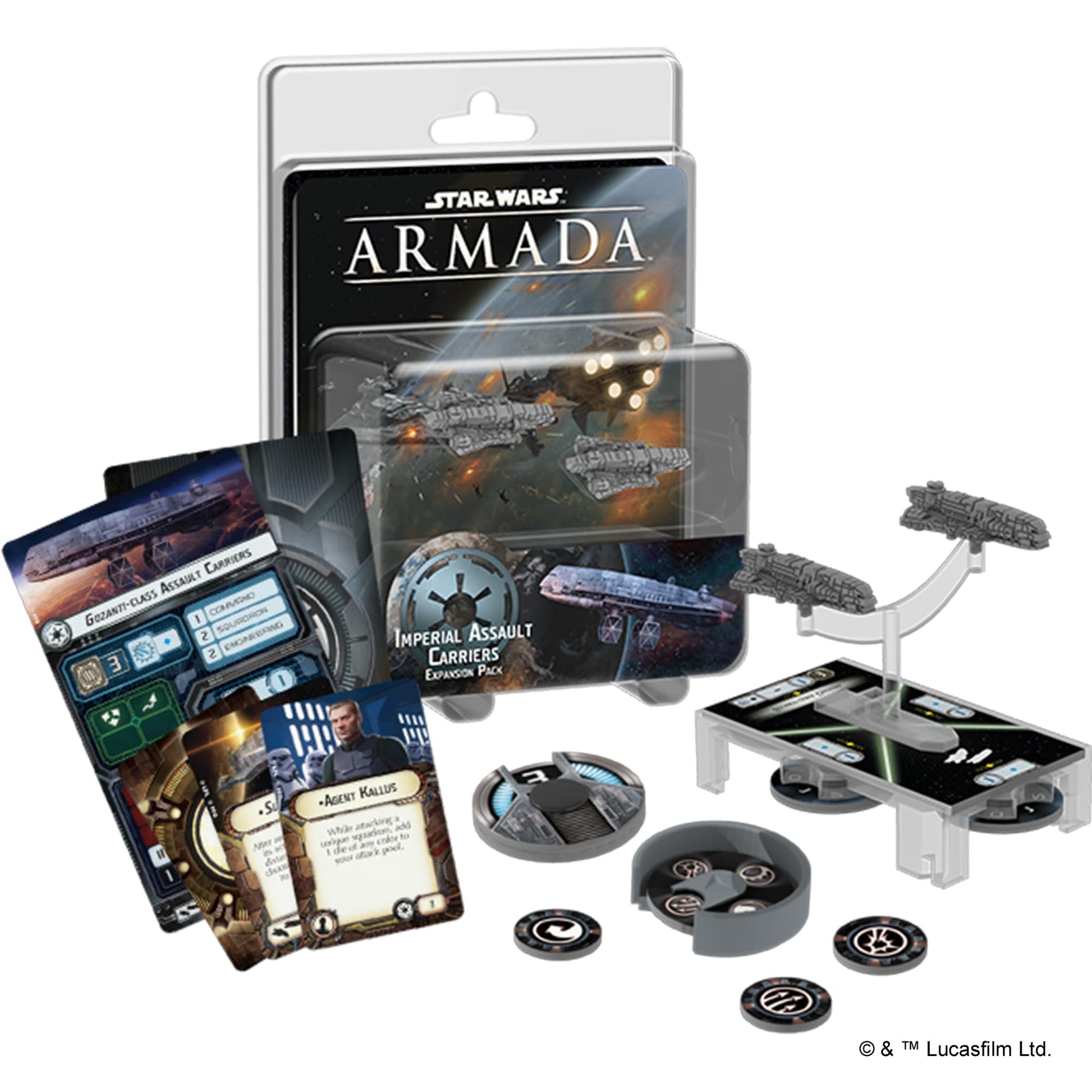 - Q: What is included in the Star Wars: Armada Imperial Assault Carriers Expansion Pack? A: The Star Wars: Armada Imperial Assault Carriers Expansion Pack includes two Gozanti-class cruiser miniatures, two ship cards, eight upgrade cards, one rules reference card, and all necessary components for gameplay.