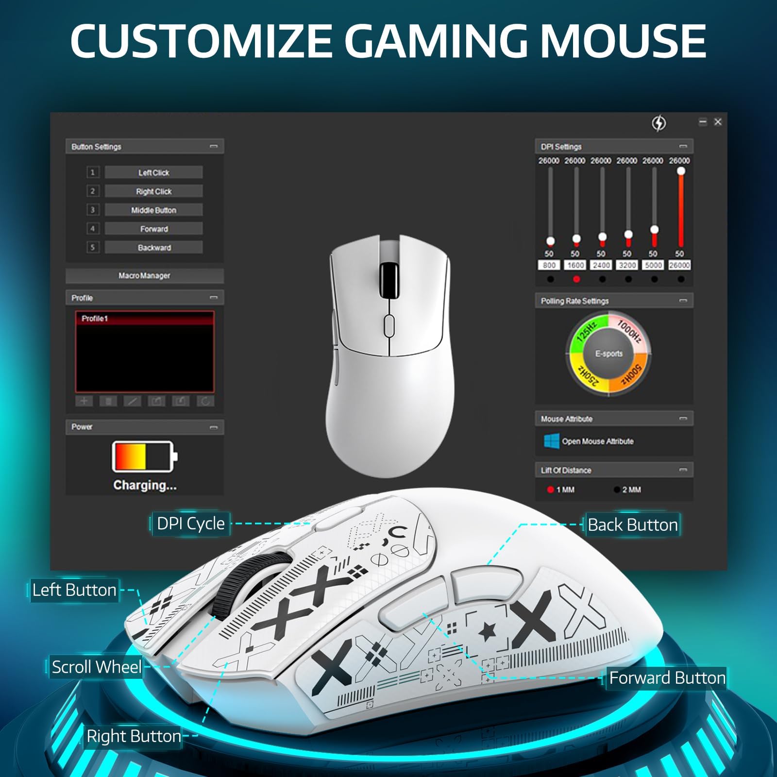 - Q: What is the DPI range of the ATTACK SHARK R1 Wireless Gaming Mouse? A: The ATTACK SHARK R1 features a PAW3311 optical sensor with six adjustable DPI settings ranging from eight hundred to eighteen thousand DPI. This allows users to customize sensitivity for different tasks.