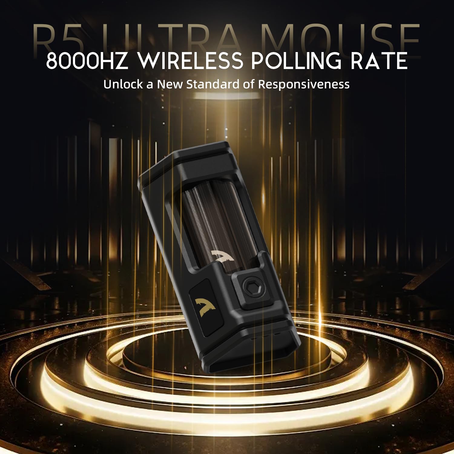 - Q: What is the polling rate of the R5Ultra mouse? A: The R5Ultra has a wireless polling rate of eight kilohertz and a one kilohertz polling rate in wired mode, ensuring low latency and responsive performance.
