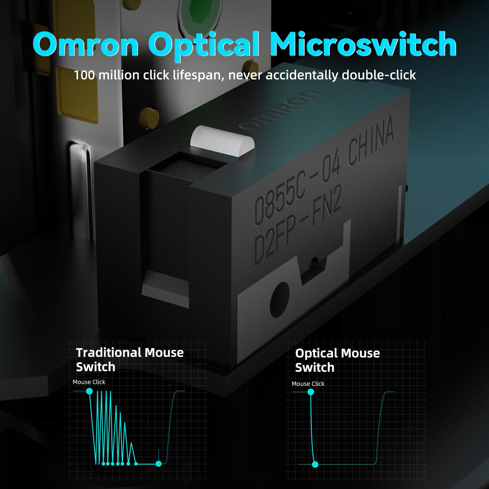 - Q: How durable are the switches on the ATTACK SHARK V5? A: The mouse features durable optical switches that have a lifespan of over one hundred million clicks.