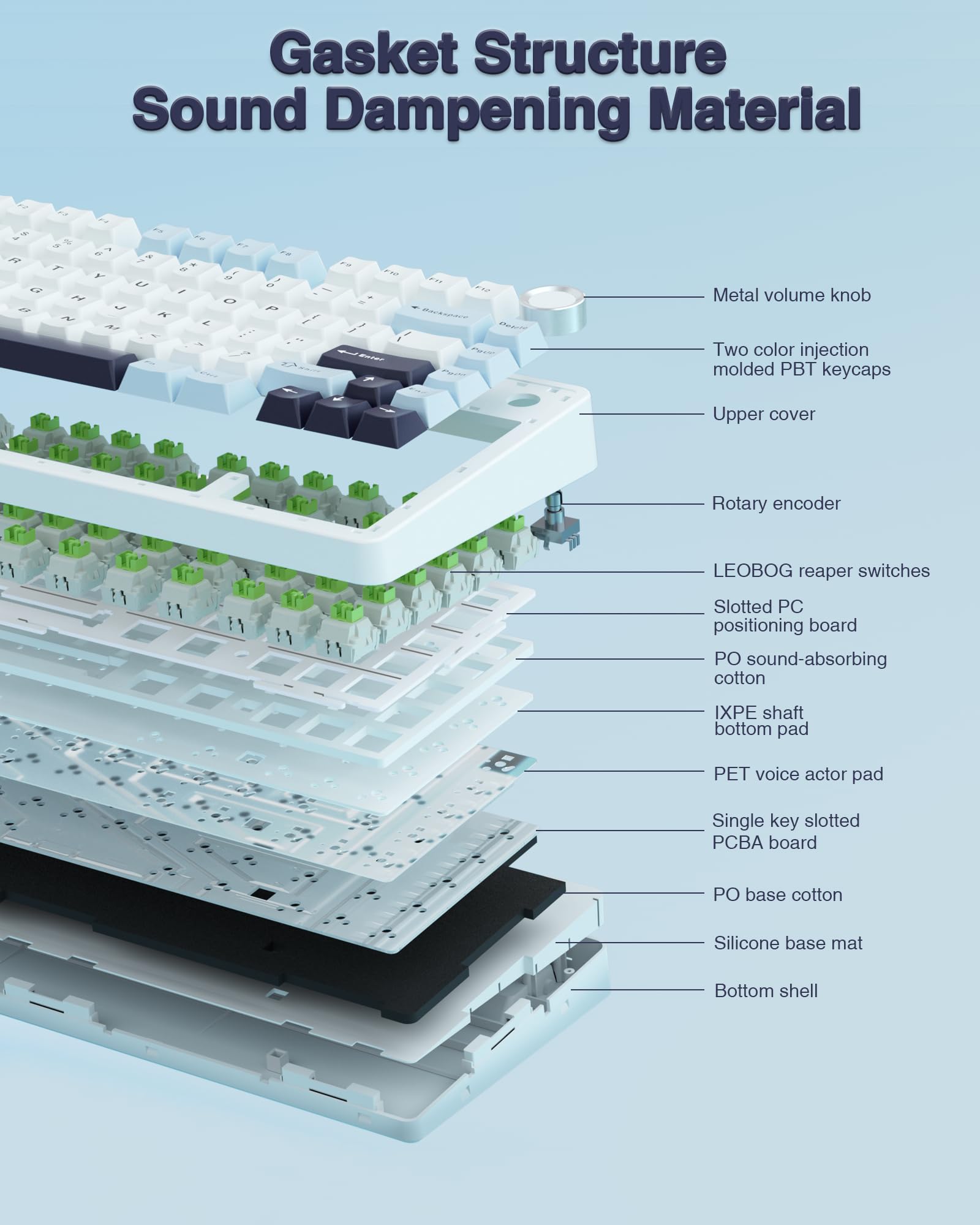 - Q: How does the AULA F75 keyboard minimize noise during operation? A: The AULA F75 incorporates an advanced structure with an integrated silicone pad and multiple layers of filling silencer, which help to reduce noise from key presses and provide a solid typing experience.