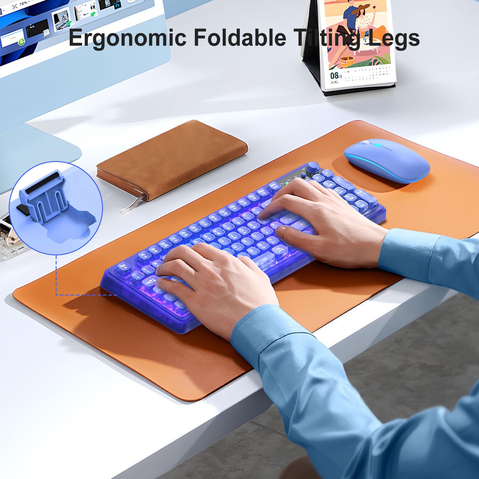 - Q: What ergonomic features does the keyboard have? A: The keyboard includes two adjustable tilt legs and four anti-slip pads, promoting a stable and comfortable typing position to reduce wrist strain during long sessions.