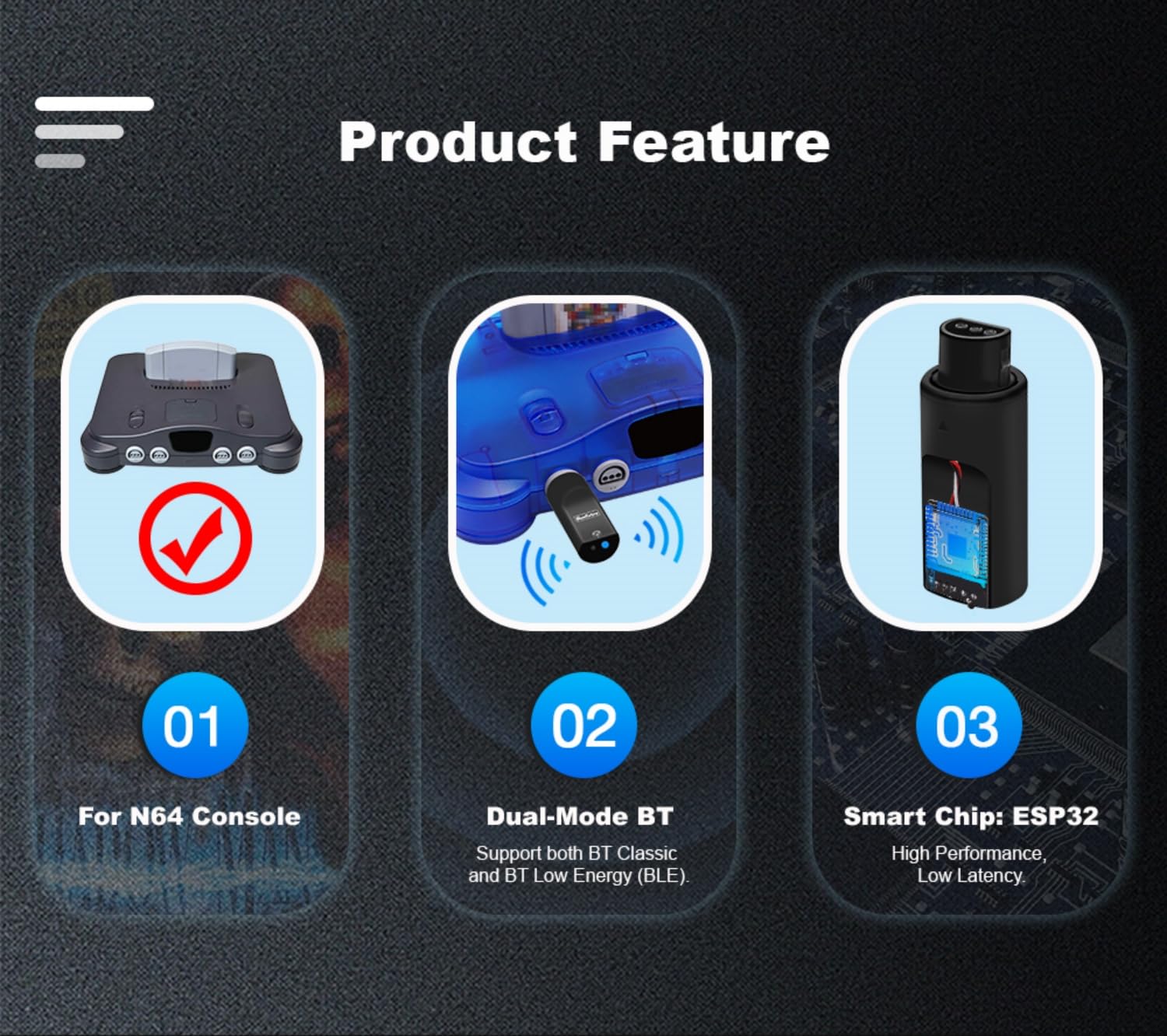 - Q: What gaming consoles does the BITFUNX RetroScaler N64 Wireless Controller Adapter support? A: The BITFUNX RetroScaler N64 Wireless Controller Adapter is compatible with the N64 game console and works with various controllers including those from Xbox One S, Xbox Series X|S, Wii, Wii U Pro, 8bit-do, Retro-Bit, PS3, PS4, and PS5.
