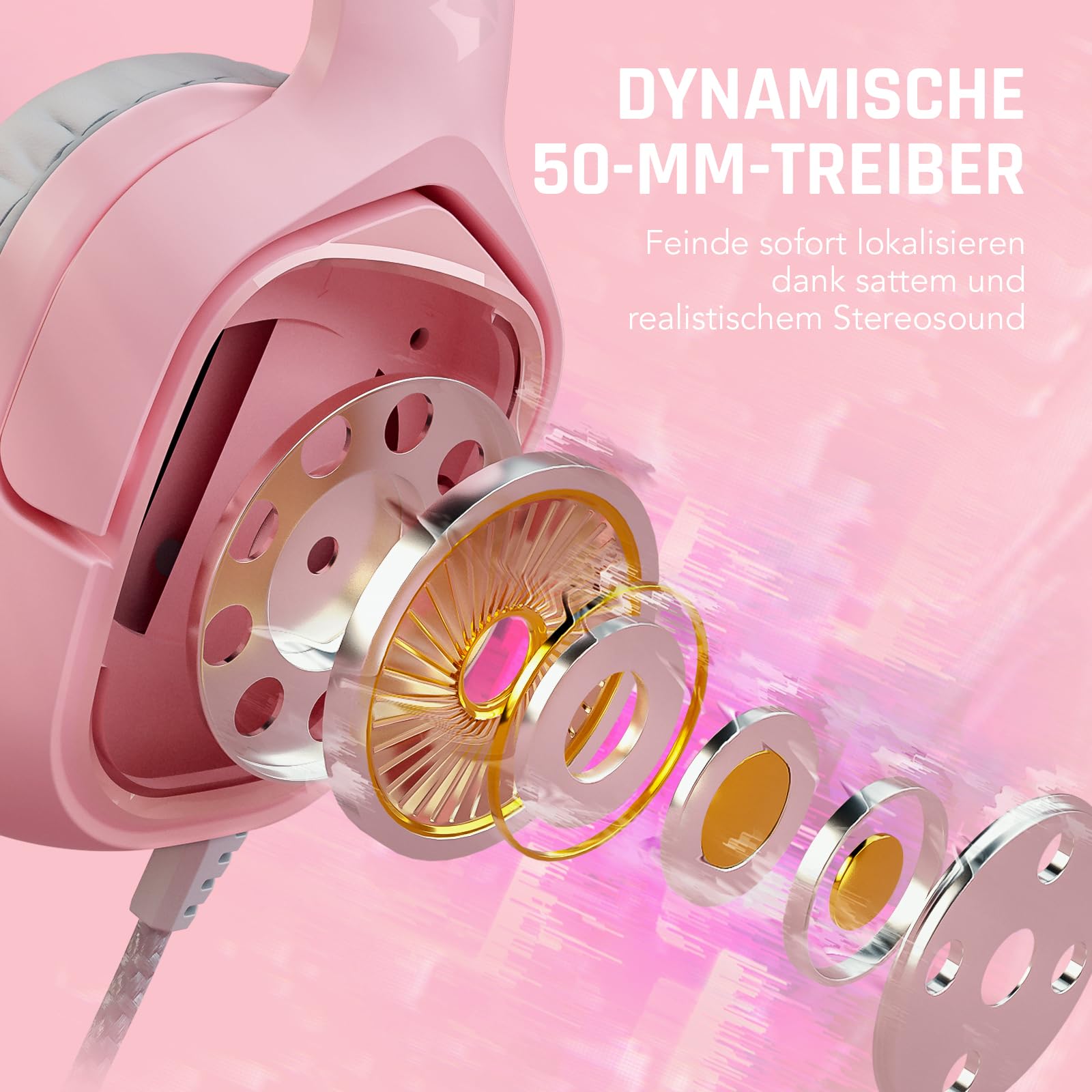 - Q: How do the 50mm drivers enhance gaming audio? A: The oversized 50mm dynamic drivers provide accurate positional audio, allowing you to pinpoint the origin of sounds in the game, which enhances your overall gaming awareness and experience.