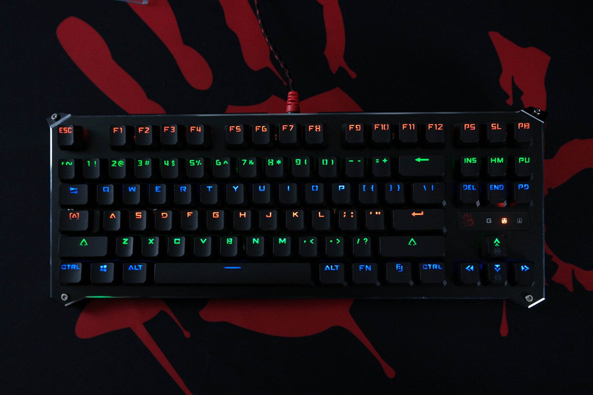 Bloody B830 Light Strike Compact Optical Gaming Keyboard - Tactile & Clicky, 0.2ms Response, Neon LED Backlit, B830-Blue