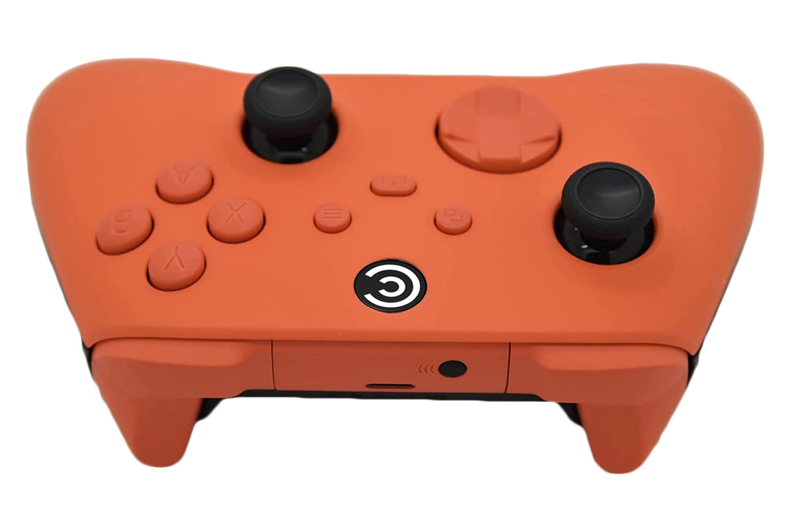 - Q: What unique features does the Custom Controllerzz controller offer? A: This controller features a custom-designed shell with an orange color scheme and orange inserts, providing a distinctive look while maintaining the functionality of a standard Microsoft Series X/S controller.