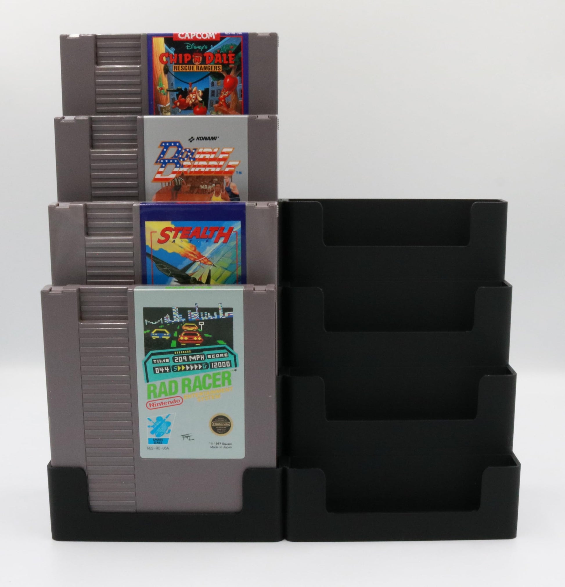 - Q: What color is the NES game tower? A: The Display Stand Tower Holder is available in black.
