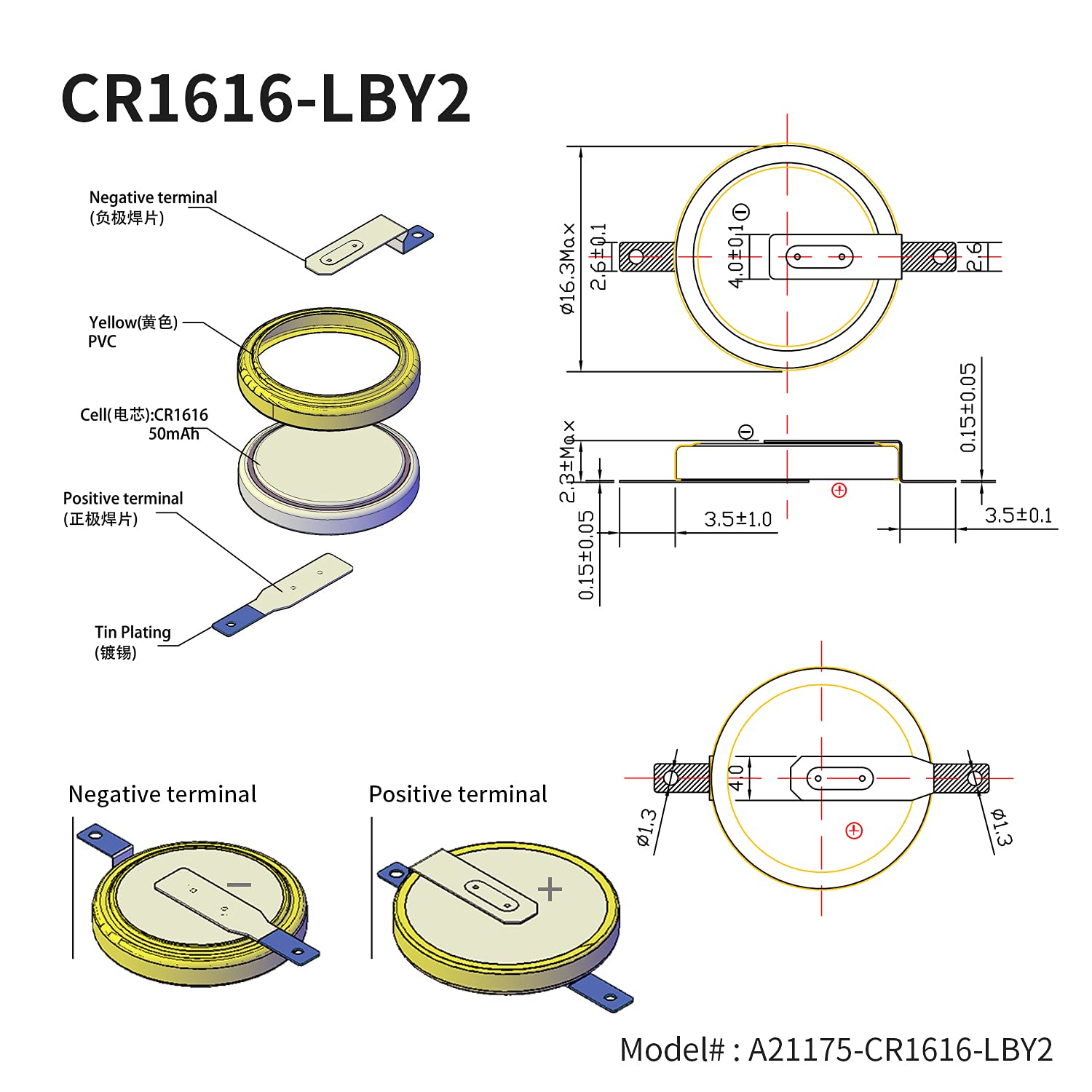 - Q: What is the size of the EEMB CR1616 battery? A: The EEMB CR1616 battery is sized as CR1616-LBY2, which is a standard measurement for this type of lithium battery.