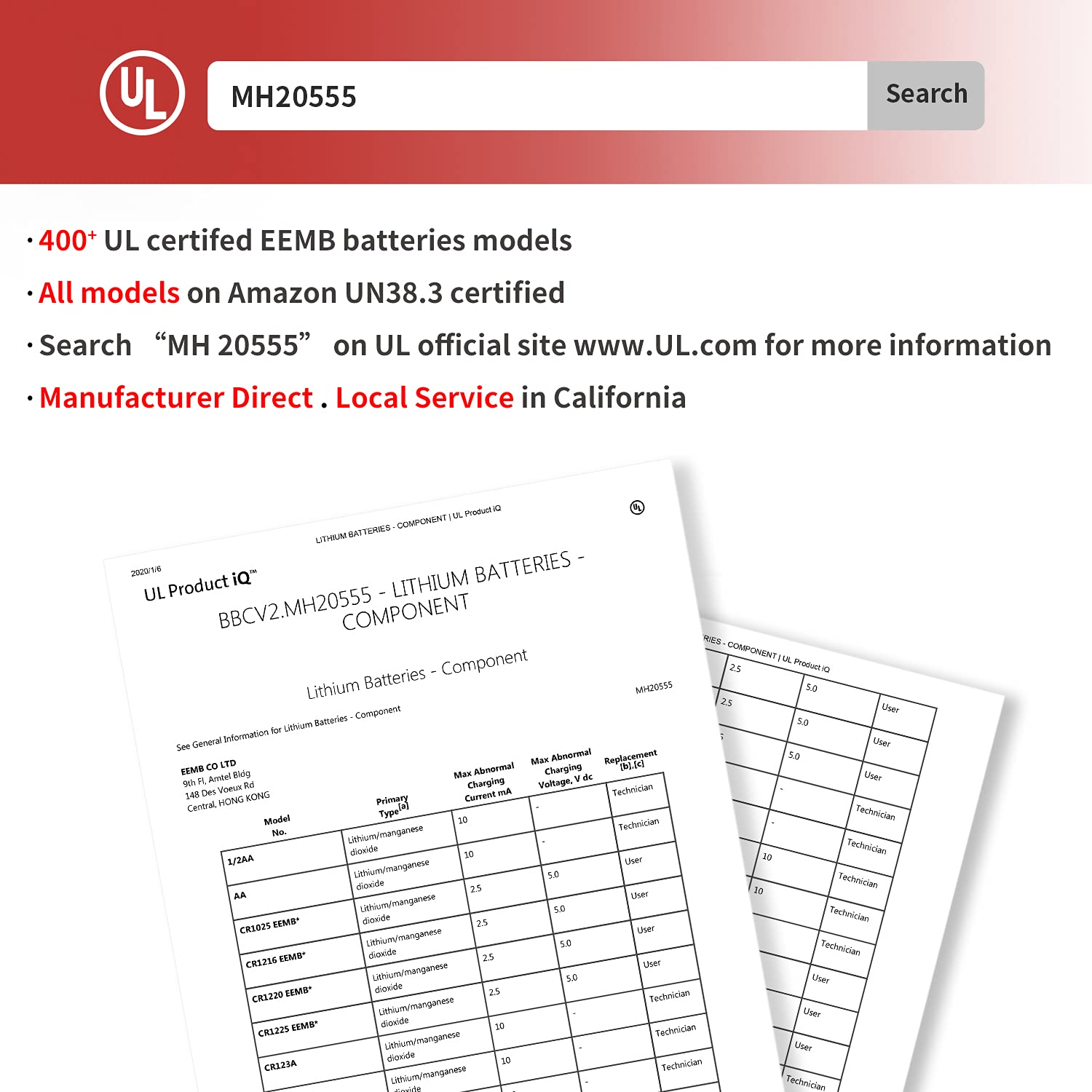 - Q: What certifications do these batteries have? A: These batteries are UN 38.3 compliant and more than 400 EEMB battery models are UL certified, ensuring safety and reliability.