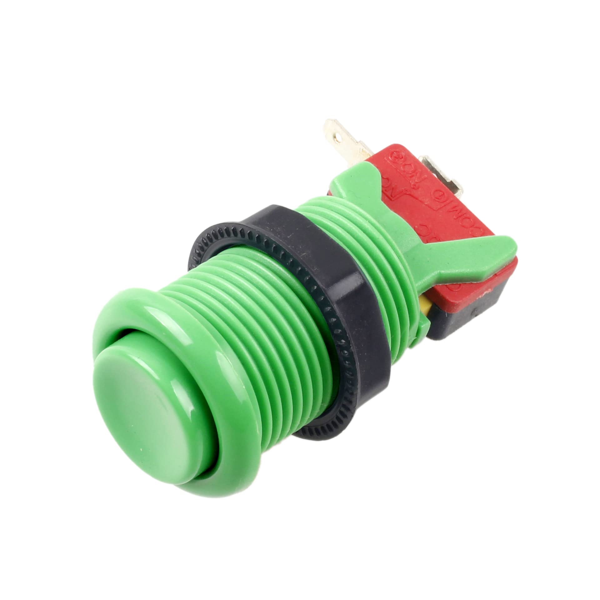 - Q: What color options are available for these arcade buttons? A: This specific model of arcade buttons is available in green.
