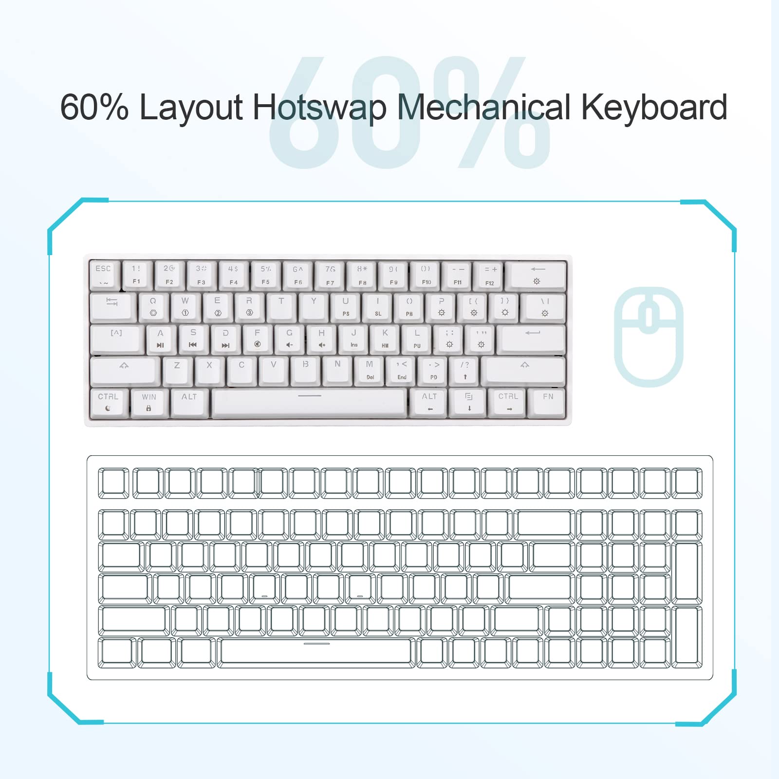 - Q: How many RGB backlight options does the SK61 keyboard have? A: The SK61 keyboard features over 16.8 million RGB backlight options, providing various lighting effects such as Aurora, Ripple, and Music modes to enhance your gaming or typing experience.
