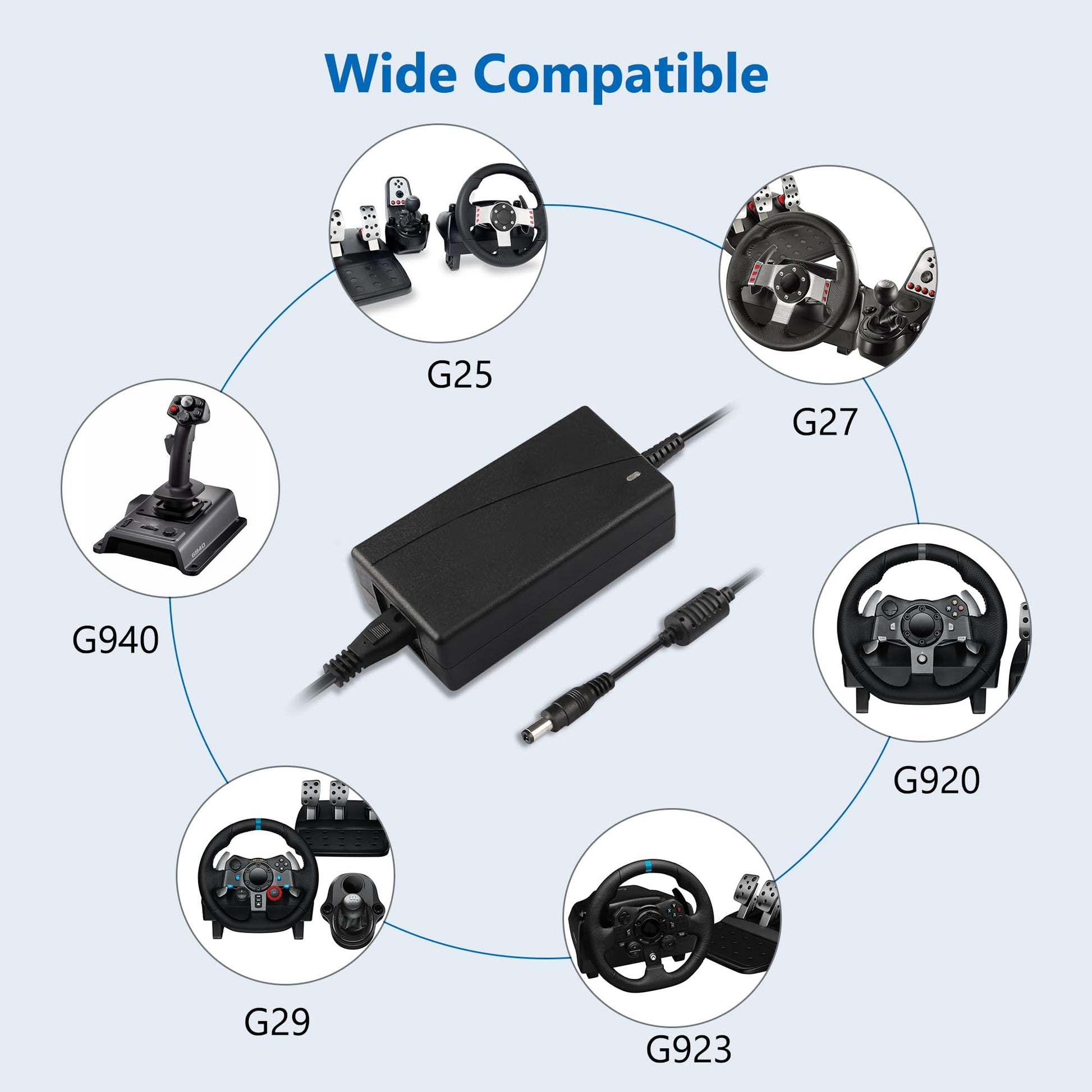 - Q: What devices are compatible with the Replacement for Logitech G920 G29 Power Supply? A: This power supply is compatible with various Logitech racing wheels including the G920, G29, G923, G25, G27, and G940. It also works with the Driving Force GT Racing Wheel and the Xbox 360 GT.