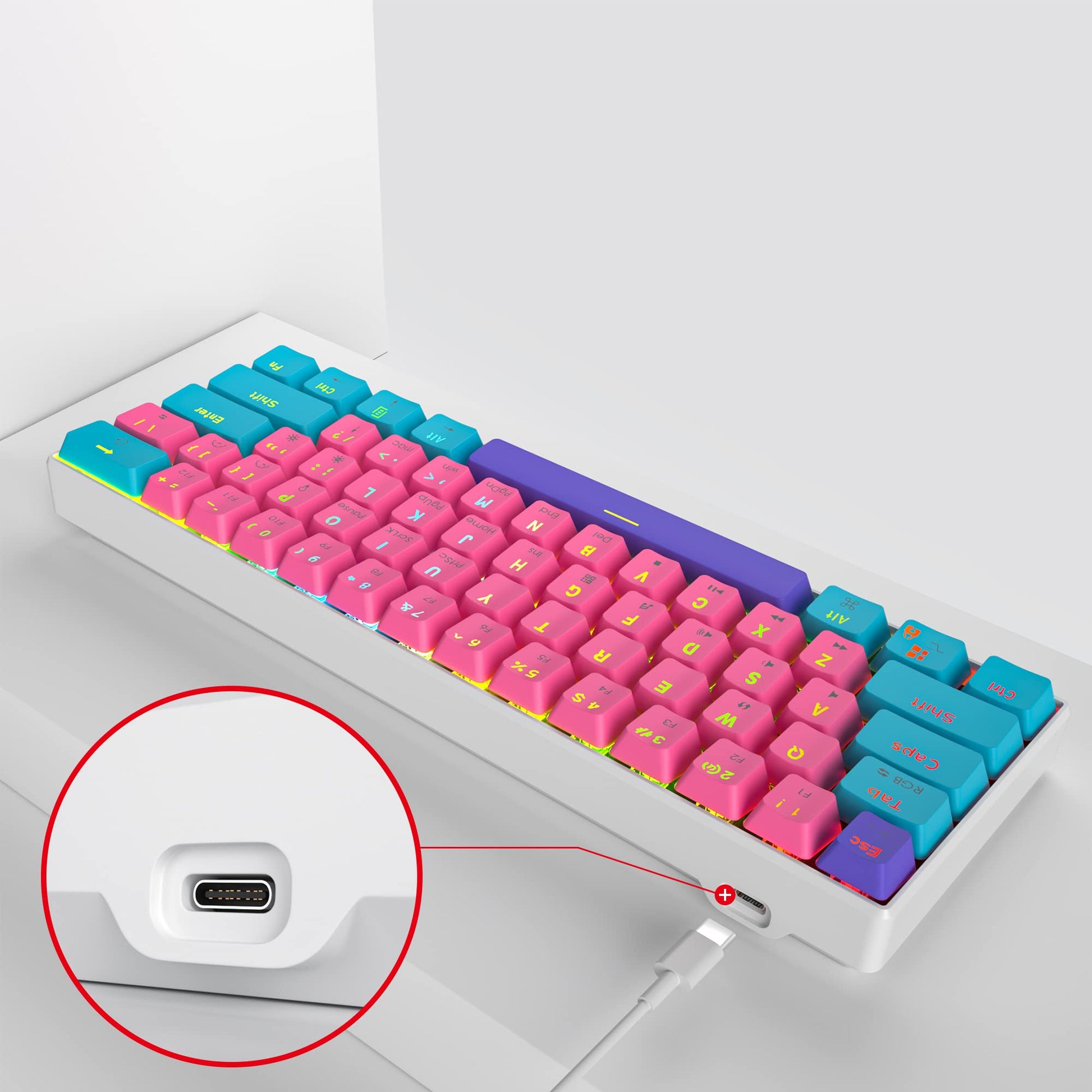 - Q: What color options are available for the Fogruaden keyboard? A: The Fogruaden 60% Mechanical Keyboard is available in a stylish Pink color with Red switches, appealing to users who prefer a vibrant aesthetic.