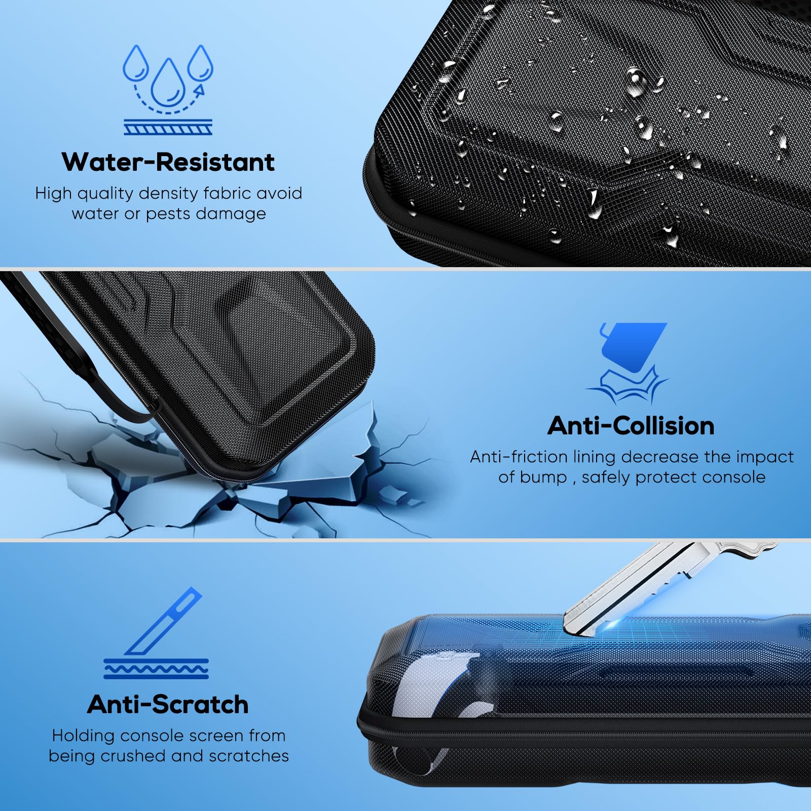 - Q: Is the carrying case easy to transport? A: Yes, the carrying case features a comfortable soft silicone anti-slip hand strap and smooth double zippers for easy opening and closing, making it convenient for travel.