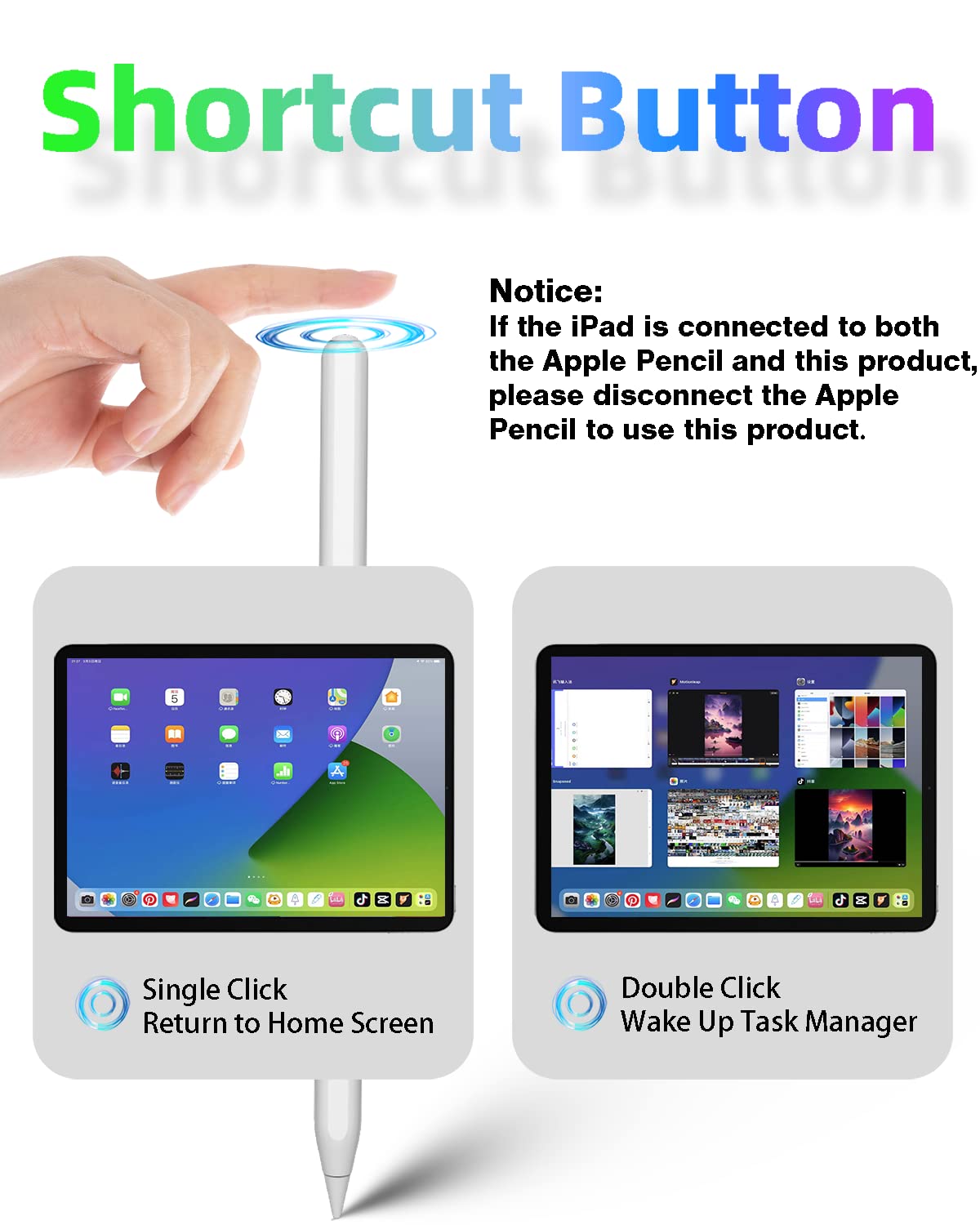 - Shortcut Key Functions: Includes convenient shortcuts activated by tapping the stylus, allowing users to quickly return to the main screen or select applications with ease.