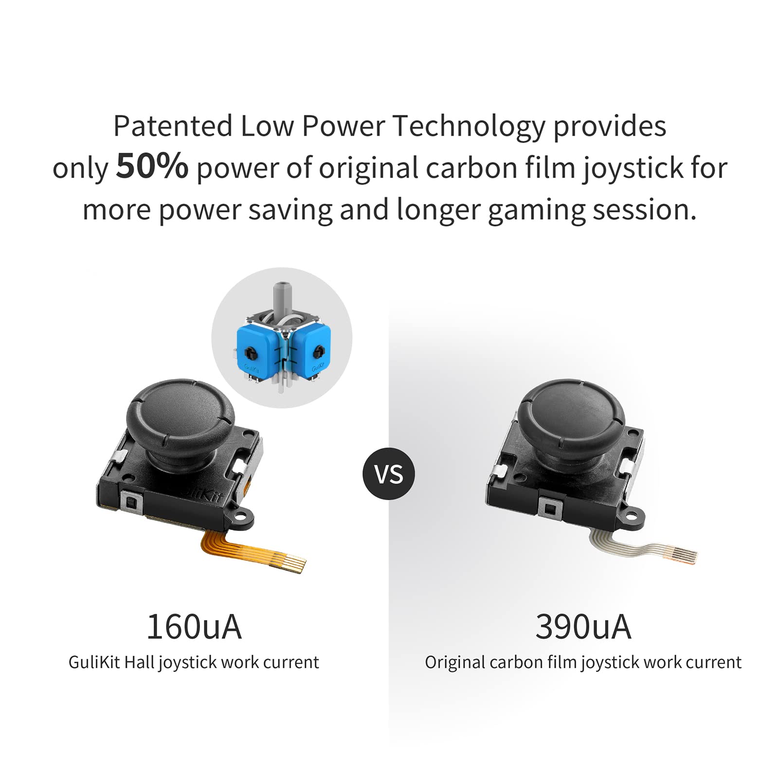 - Q: What are the energy consumption benefits of the Gulikit joystick? A: The Gulikit Hall Joystick is designed to reduce energy consumption by fifty percent compared to traditional carbon film joysticks. This helps to extend the battery life of your gaming device.