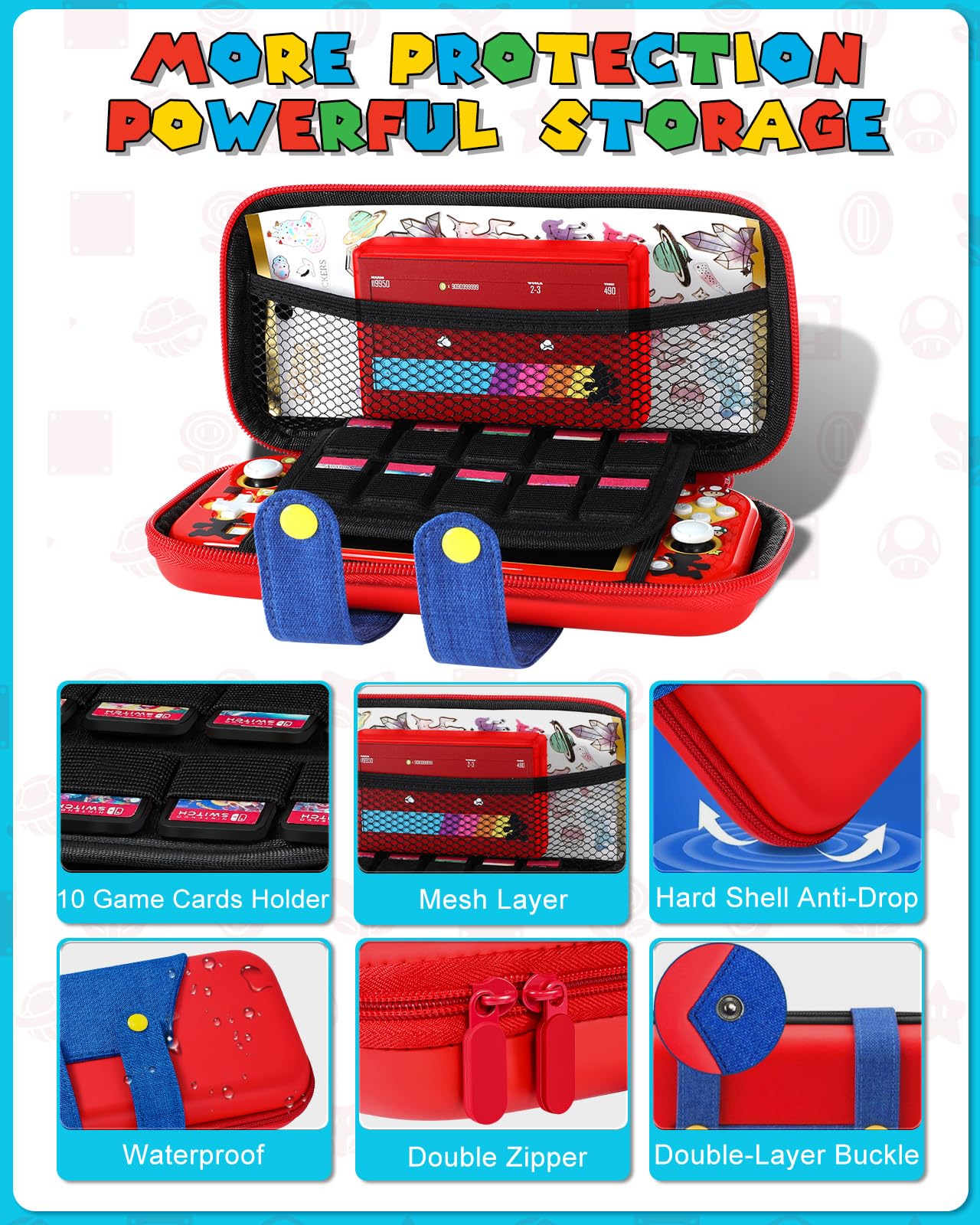 - Q: What is the design of the Gurgitat 6in1 Maro Switch Lite Case like? A: The case features a fun and eye-catching red and blue character design that appeals to gamers, especially teens and young adults.