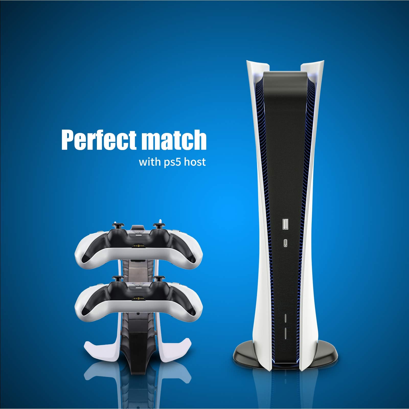 - Q: What is the design of the PS5 Controller Charger like? A: The charger features a compact, tower-like design that allows you to stack your PS5 controllers vertically, saving space and keeping your gaming area organized.