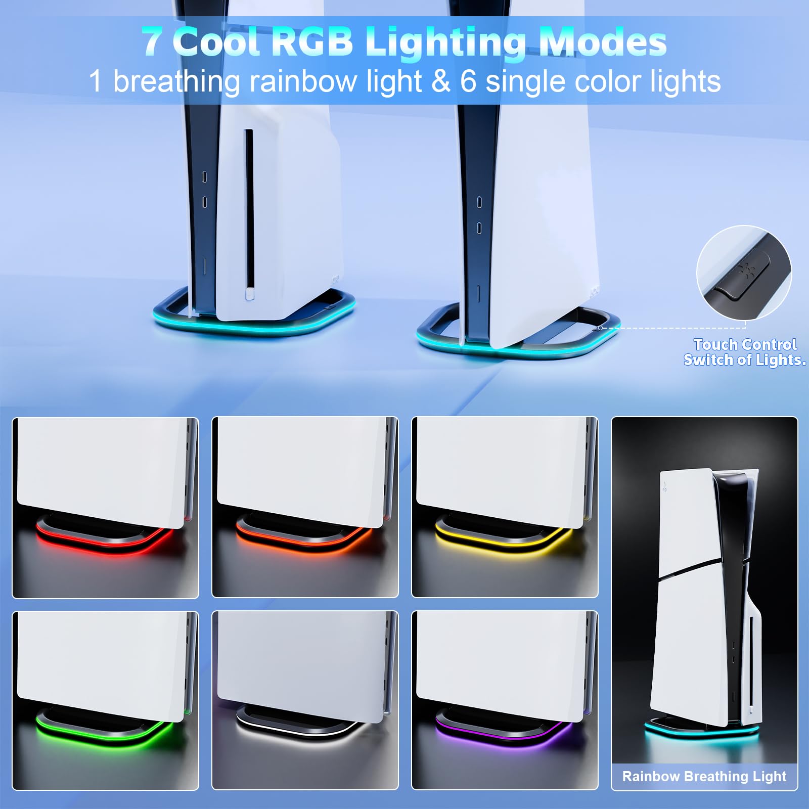- Q: What features does the RGB lighting have? A: The stand features seven types of RGB lights that can be controlled via a touch switch. A short press changes the colors, while a long press turns the lights on or off.