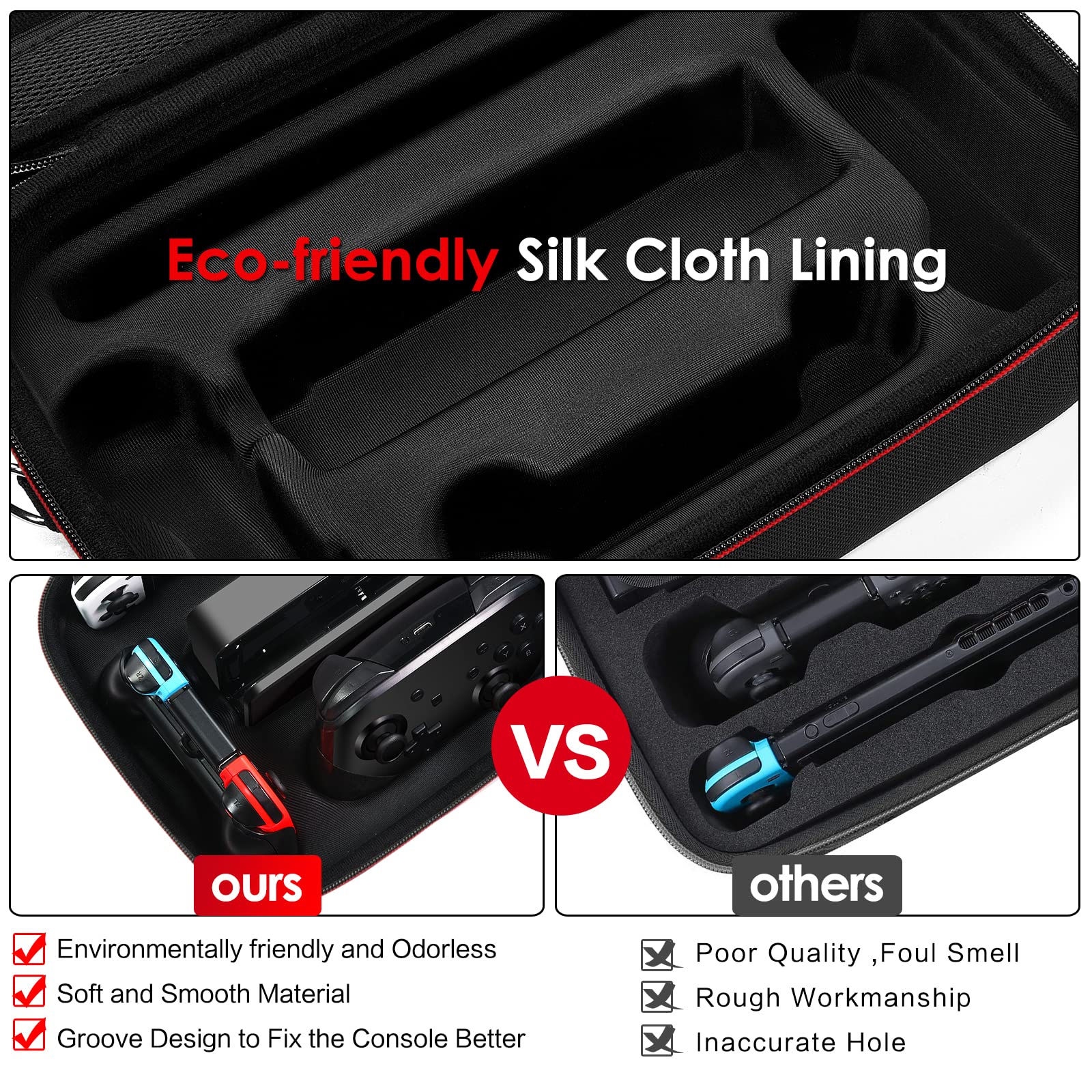 - Q: Can I store additional accessories in the ivoler case? A: Absolutely. The case features multiple storage options, including interior grooves for the console and JoyCons, as well as a mesh pocket for smaller accessories like HDMI cables and charging grips.