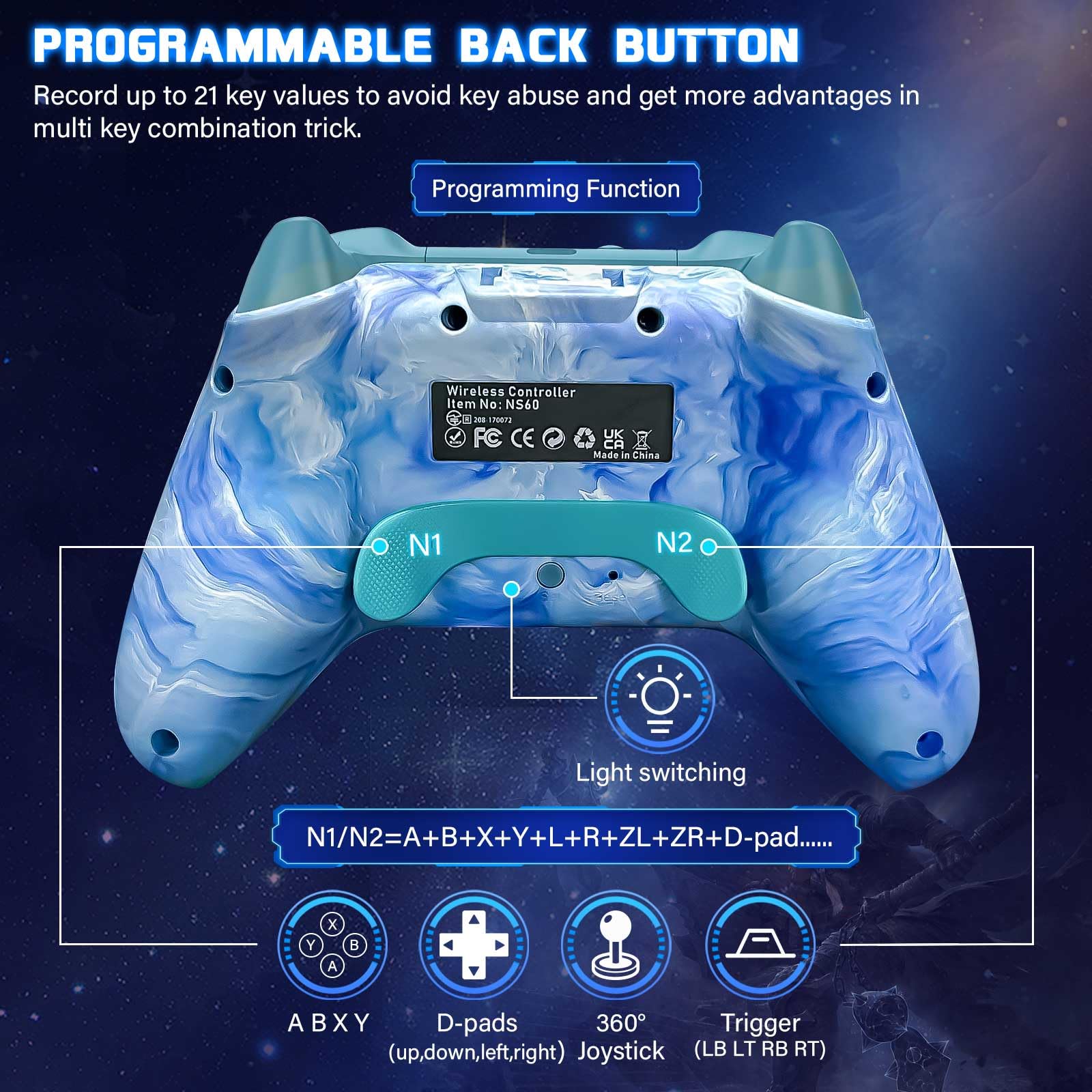 - Q: What are the RGB lighting options available on the controller? A: The Wireless Pro Controller features ten RGB light modes and three changing modes: Dazzling Mode, Fixed Color Loop, and Single Color Breathing. You can adjust the lighting using the Keylinker app.