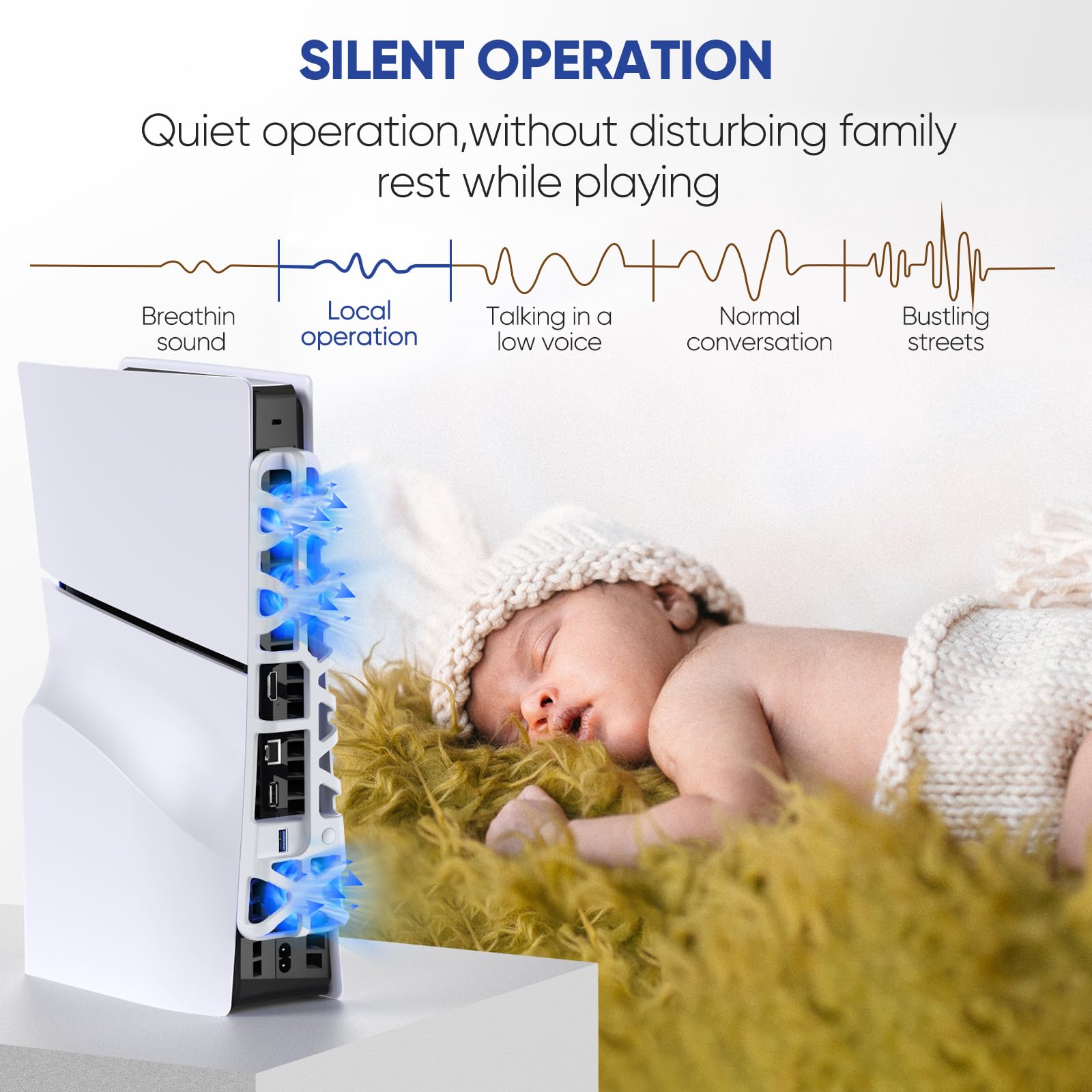 - Q: Is the cooling fan for PS5 Slim noisy during operation? A: No, the cooling fan operates quietly at a noise level of less than thirty-five decibels, ensuring a silent gaming experience while effectively cooling the console.
