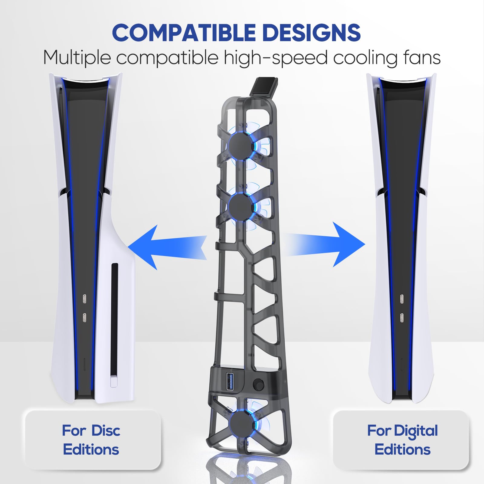 - Q: Is the PS5 Slim Cooling Fan compatible with both Disc and Digital Editions? A: Yes, the PS5 Slim Cooling Fan is compatible with both the PS5 Slim Digital and Disc Editions, making it a versatile accessory for all PS5 Slim console models.