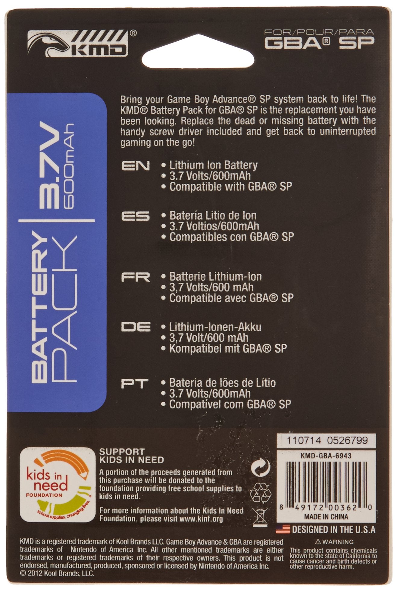 - Q: What is the warranty on the KMD GBA SP Replacement Lithium Ion Battery? A: Warranty details may vary by retailer, so it's advisable to check with the seller for specific warranty information regarding the KMD GBA SP Replacement Battery.