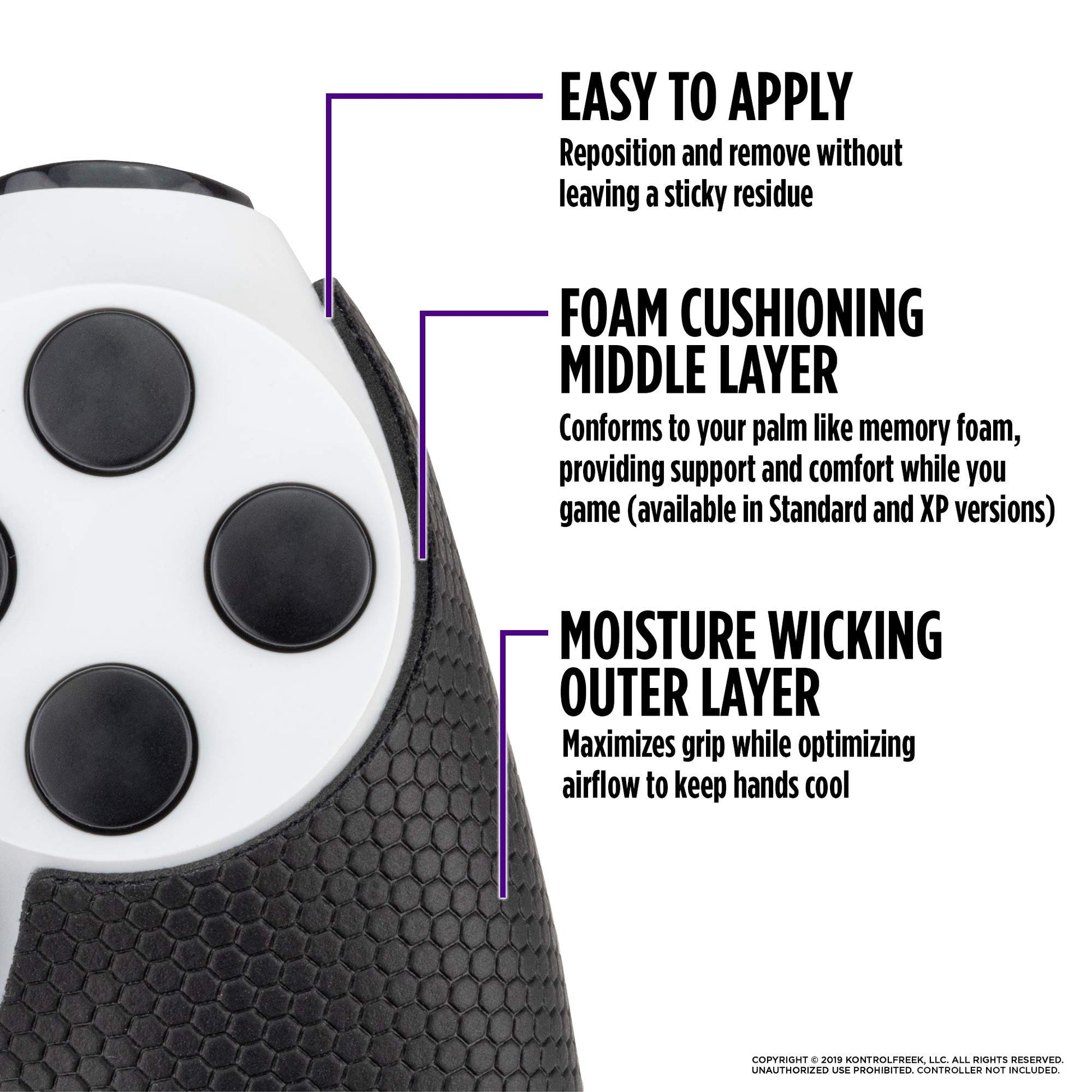 - Q: What are the main features of the KontrolFreek Performance Grips XT? A: The KontrolFreek Performance Grips XT feature a honeycomb-stamped outer layer that maximizes grip and airflow, a moisture-wicking base layer for keeping hands dry, and an ultra-thin design that retains the feel of your controller.