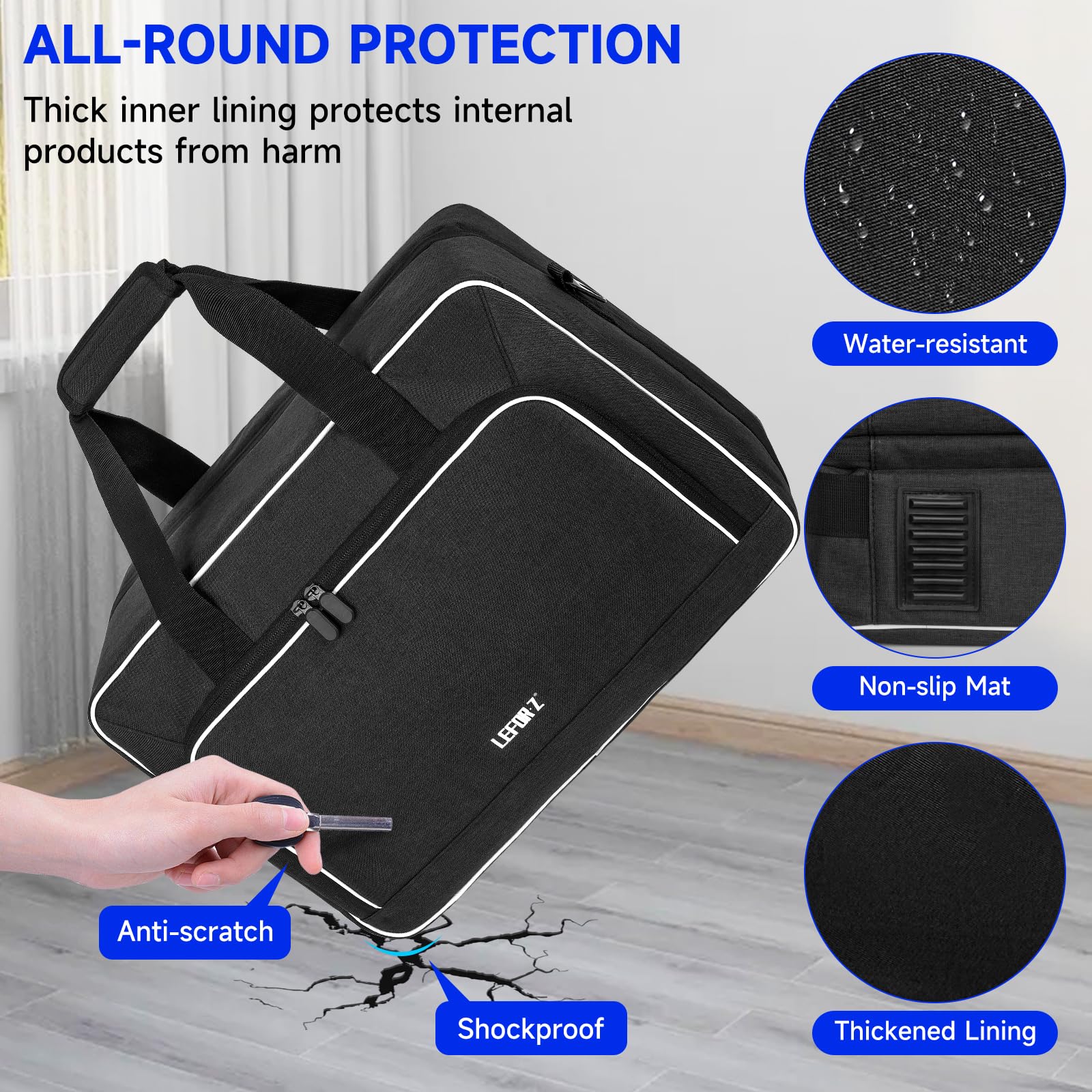 - Q: Can I carry the case in different ways? A: Yes, the carrying case offers three options for carrying: an adjustable padded shoulder strap, a comfortable handle, and a rear trolley strap for easy transport.