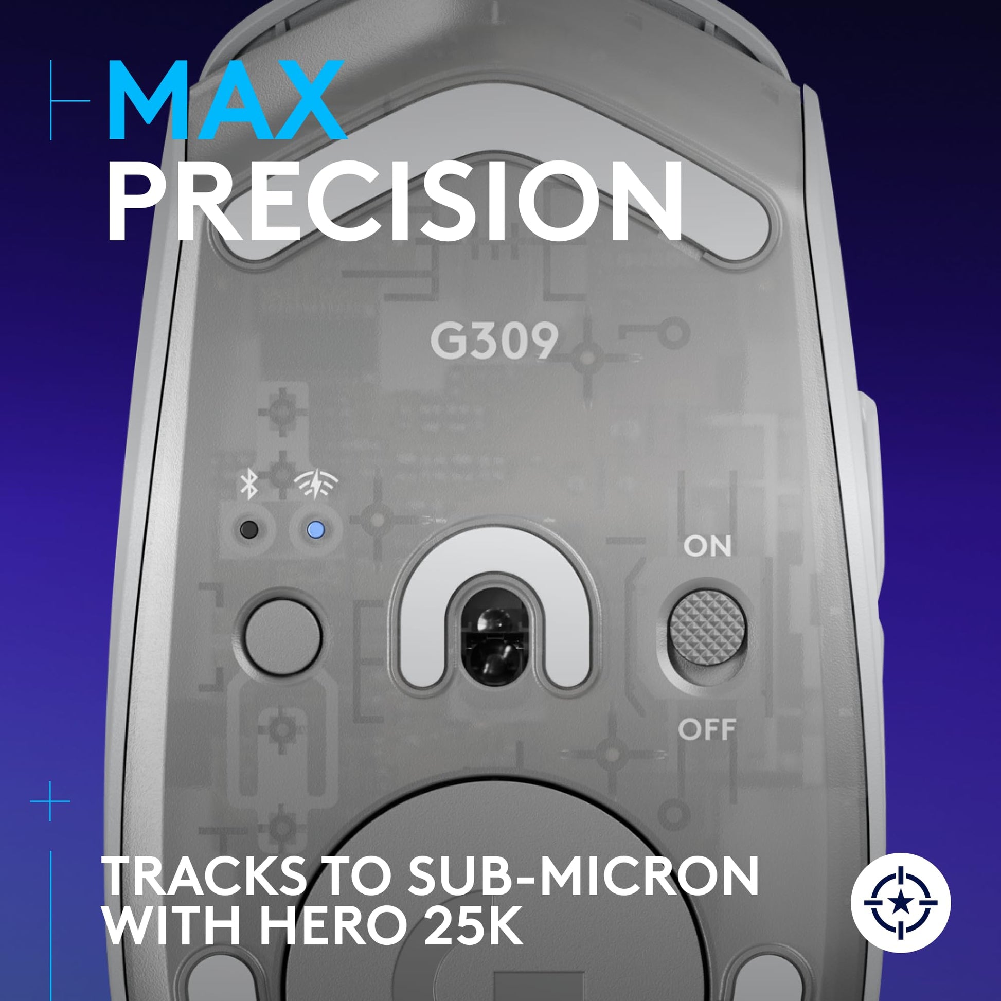 - Q: How does the HERO 25K sensor improve gaming performance? A: The HERO 25K sensor in the Logitech G309 provides max precision by tracking movements with sub-micron accuracy and zero smoothing, which enhances overall gaming performance.