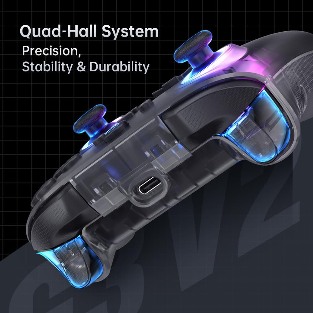- Q: What customization options does the Machenike G3V2 controller offer? A: The controller allows for significant customization, including programming two back buttons for specific game combos, adjusting four levels of vibration intensity, and syncing RGB lighting with your gaming setup.