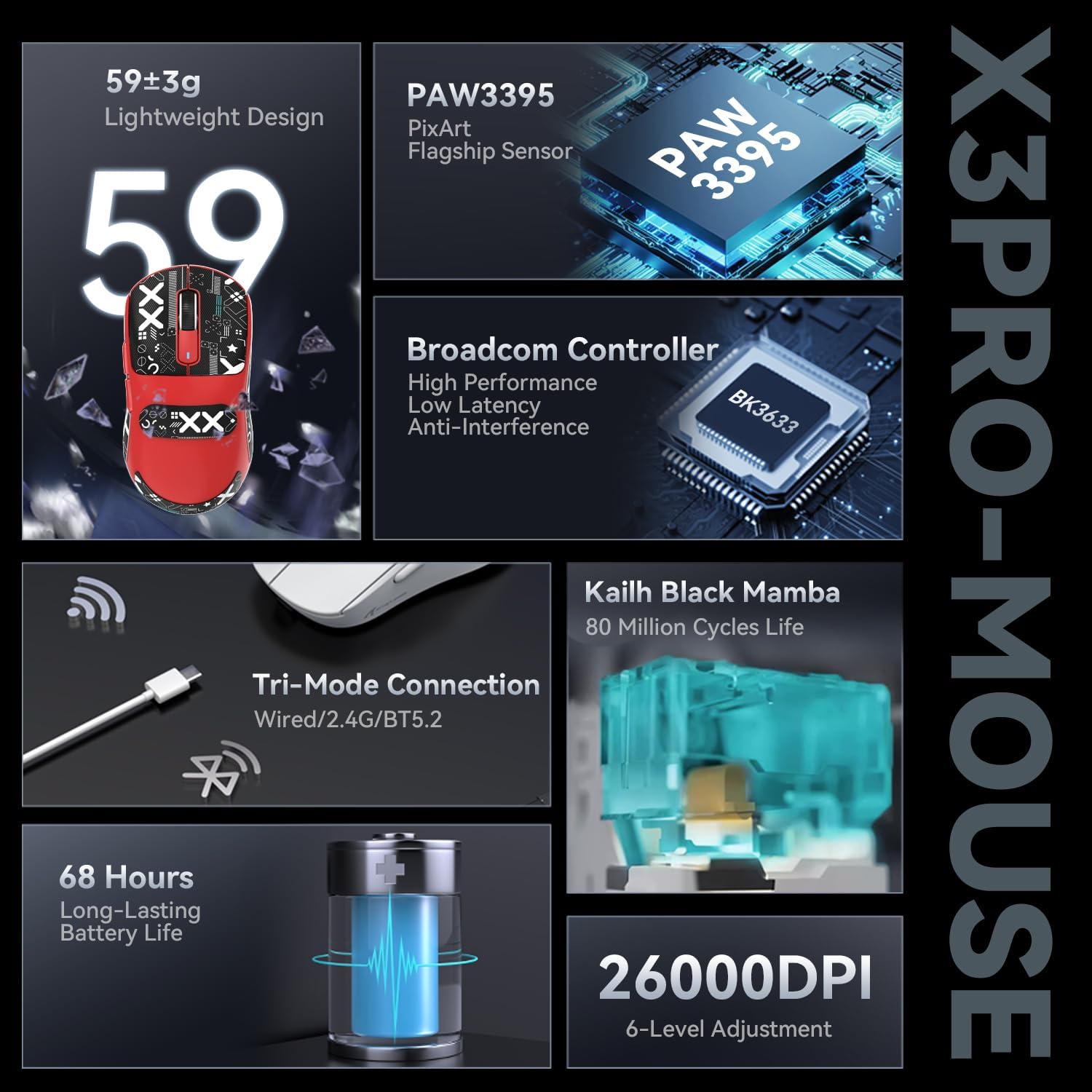 - Q: Are the Kailh GM 8.0 switches durable? A: The Kailh GM 8.0 switches used in the X3 are rated for over eighty million clicks, ensuring long-lasting performance for avid gamers.