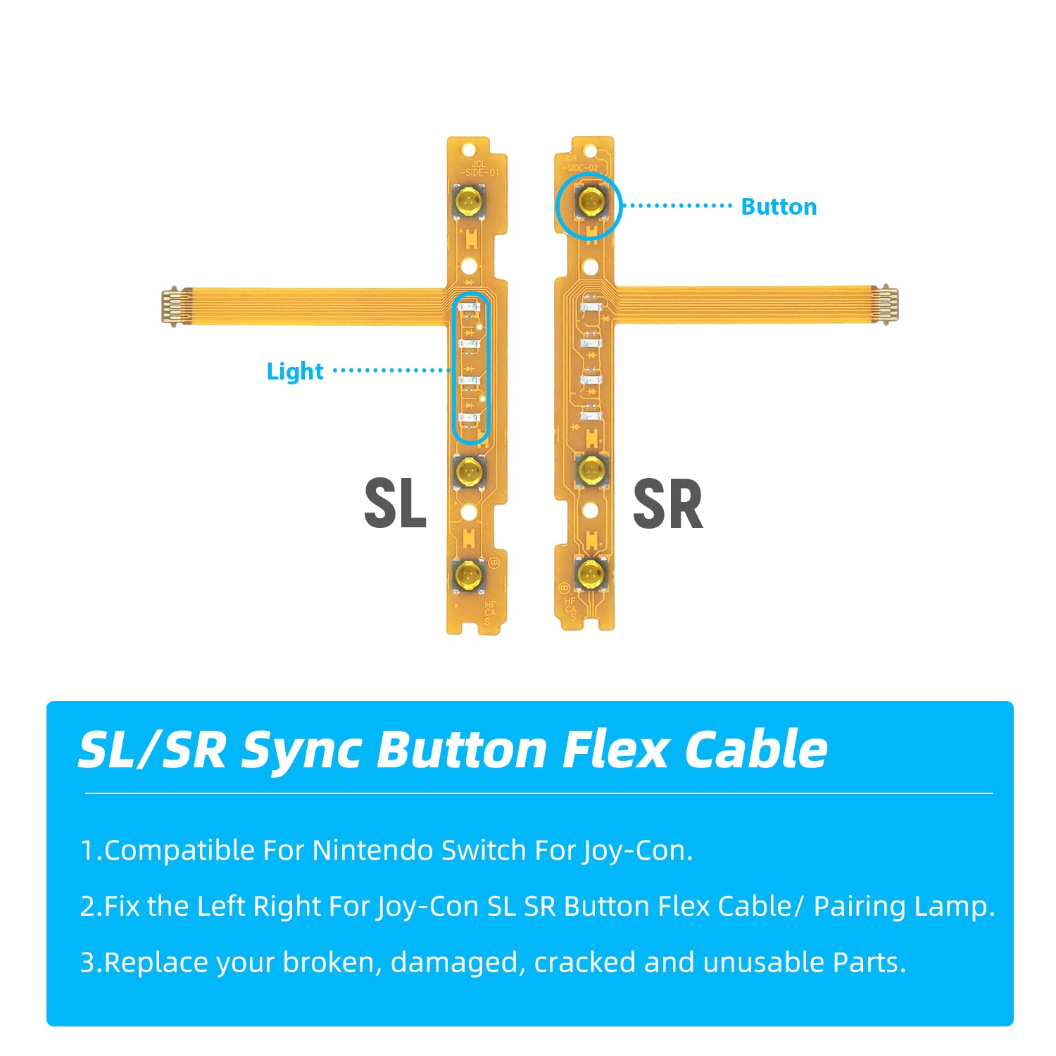 - Q: What is included in the Mcbazel Replacement SL SR Left Right Sync Button Ribbon Flex Cable Set? A: The Mcbazel Replacement SL SR Left Right Sync Button Ribbon Flex Cable Set includes the replacement flex cables for the SL and SR sync buttons of the NS Switch Joy-Con controllers. Please note that tools and instructions for installation are not included.