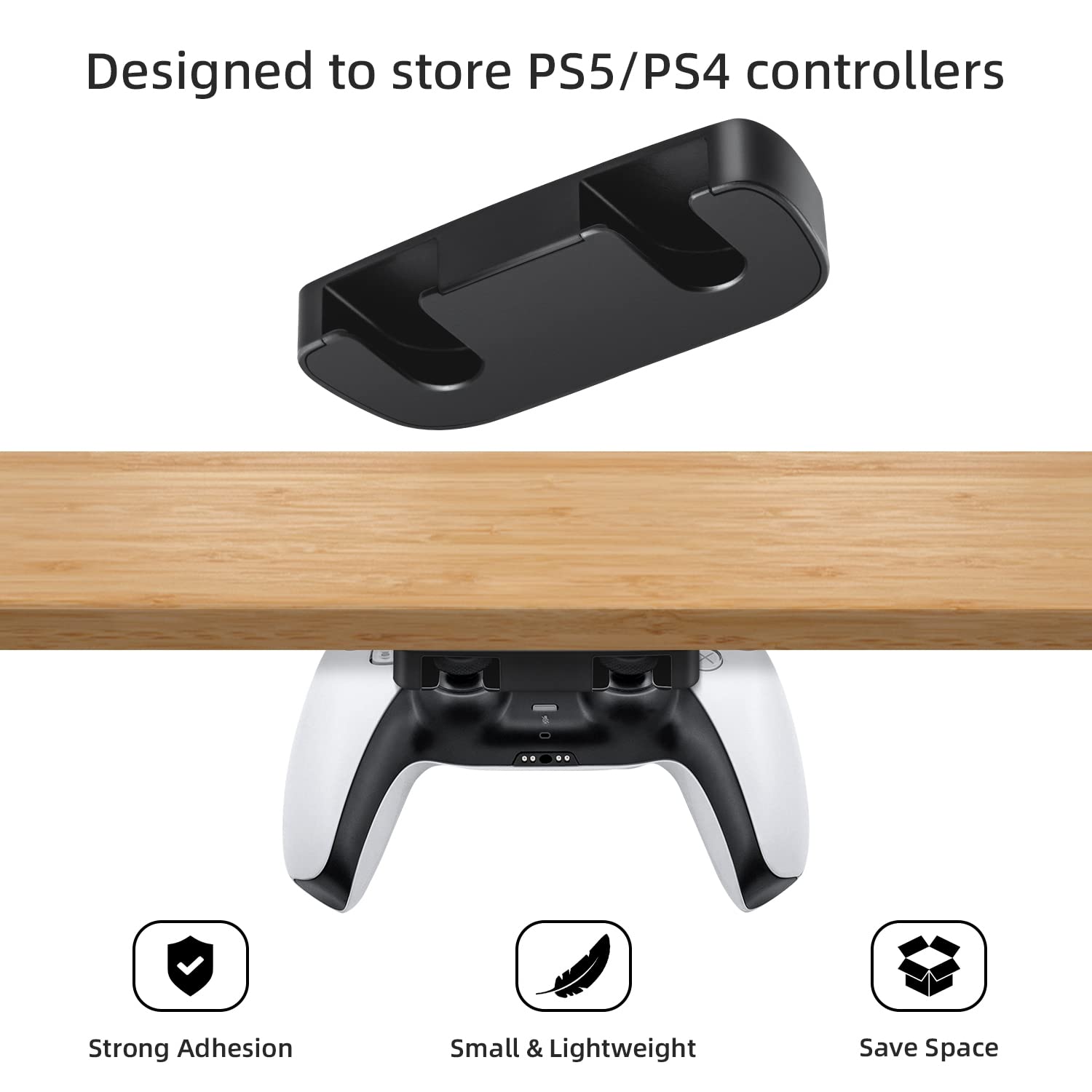 - Q: What is the weight capacity of the Mcbazel Under Desk Mount for PS5/PS4 Controllers? A: The Mcbazel Under Desk Mount is designed to securely hold PS5 and PS4 controllers, and while specific weight capacity is not listed, it is constructed from durable ABS material to ensure it can support the weight of standard controllers without bending or flexing.