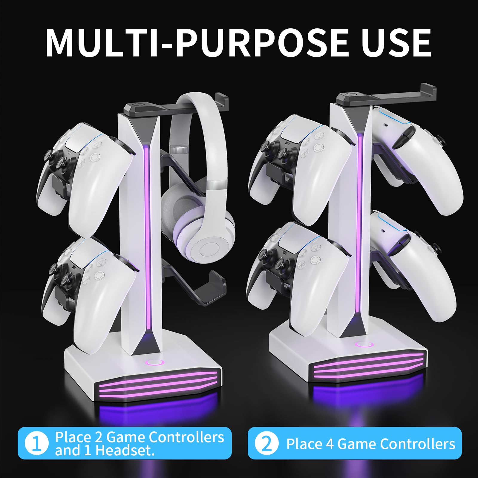 - Q: How does the stand protect my devices? A: The stand features soft rubber protection on the headset and controller placement areas, which helps prevent scratches or damage to your devices while providing stability with silicone non-slip pads.