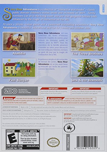 - Q: What classic stories are included in Story Hour: Adventures? A: The game includes four classic stories: Paul Bunyan, Jack and the Beanstalk, Aladdin, and The Three Brothers, each beautifully illustrated.
