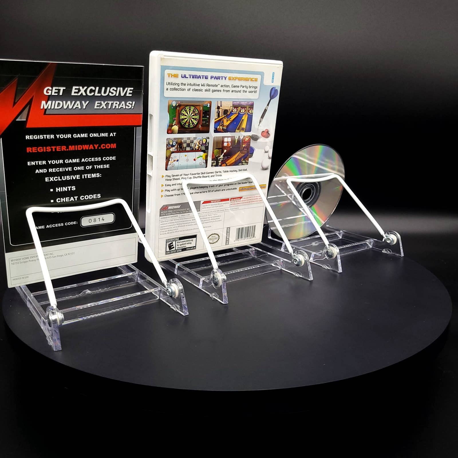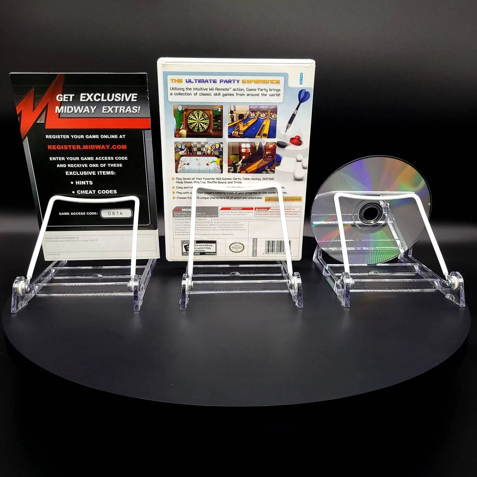 - Q: What types of games can I play with Game Party for Nintendo Wii? A: Game Party for Nintendo Wii includes seven different games such as Darts, Table Hockey, Shuffle Board, and Hoop Shoot, as well as variations of classics like Skii Ball, Ping Cup, and Trivia.