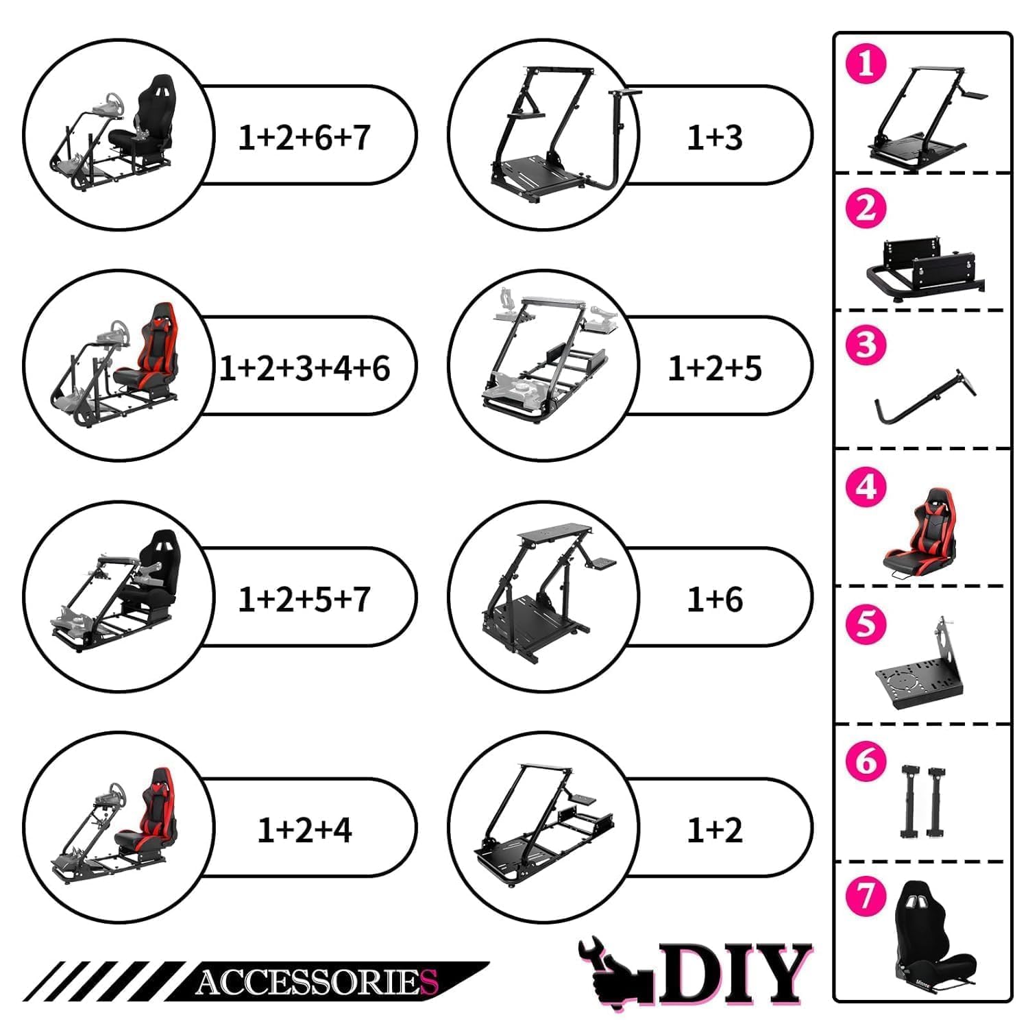 - Q: What is included in the package when purchasing the racing wheel stand? A: The package includes one racing wheel stand, a screw bag for assembly, and instructions for setup. Please note that the wheel, pedals, and shifter are not included.