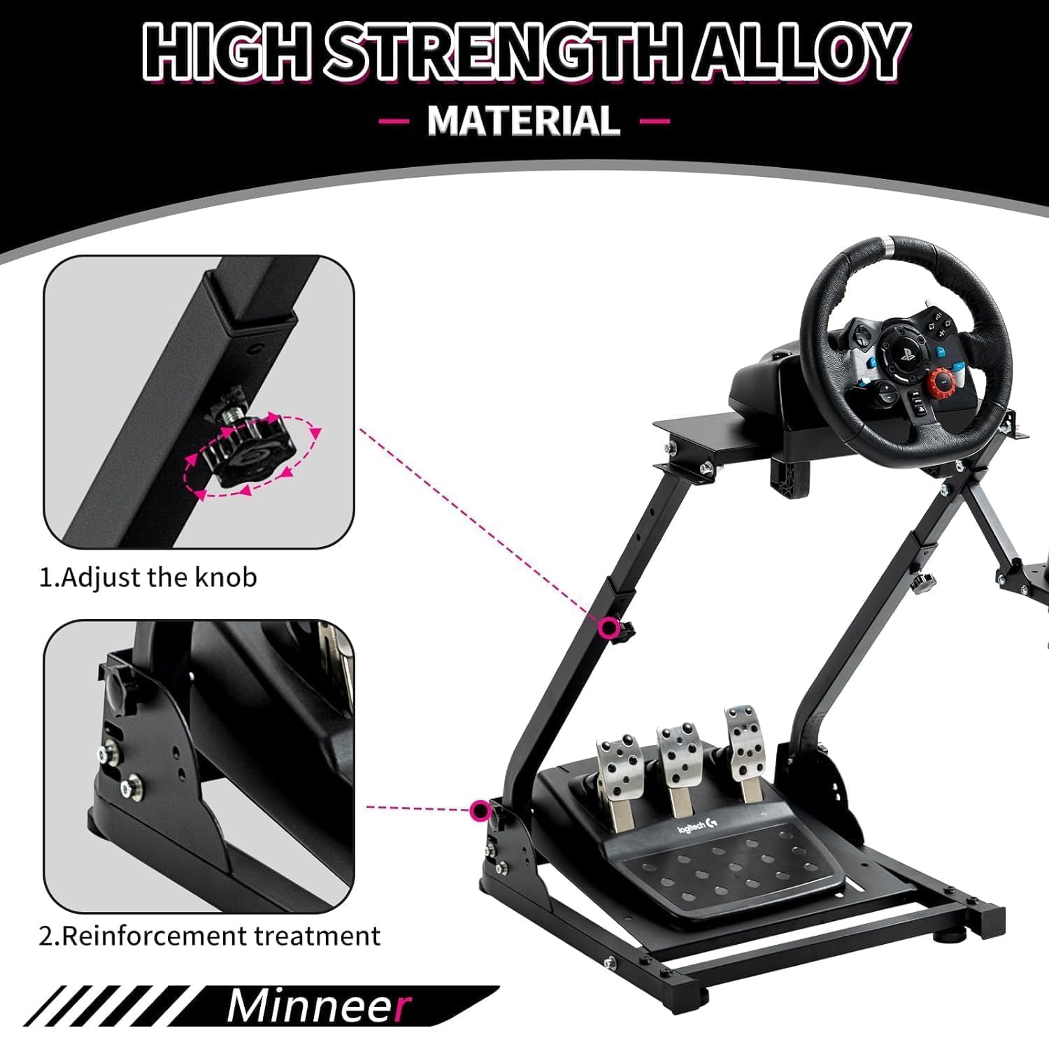 - Q: How long does it take to assemble the racing wheel stand? A: The Minneer racing wheel stand can be assembled in approximately five minutes, allowing users to quickly set it up and get back to gaming.