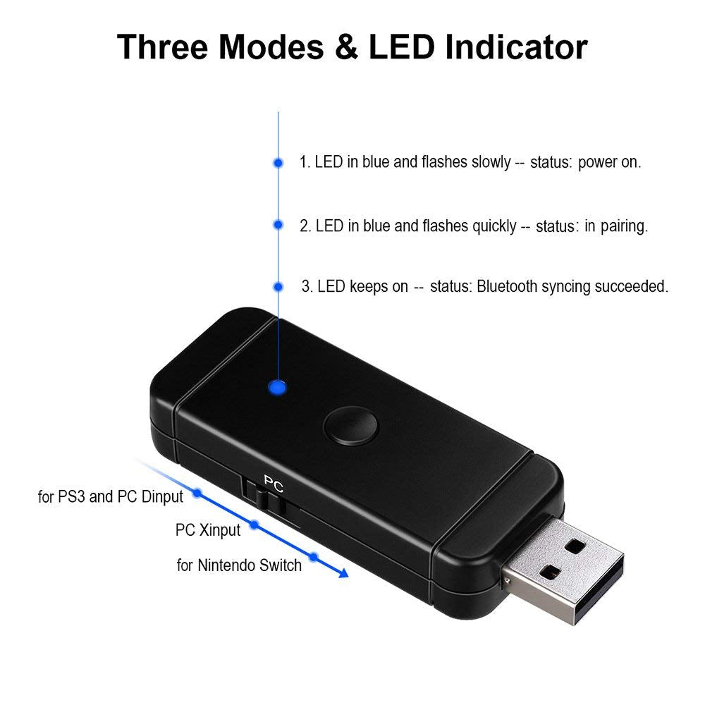 - Q: What is the range of controllers that can be connected wirelessly? A: The adapter can wirelessly connect a range of controllers including PlayStation 4, PlayStation 3, Nintendo Switch Pro, Nintendo Switch Joy-Con, Wii U Pro, and Xbox One S controllers.