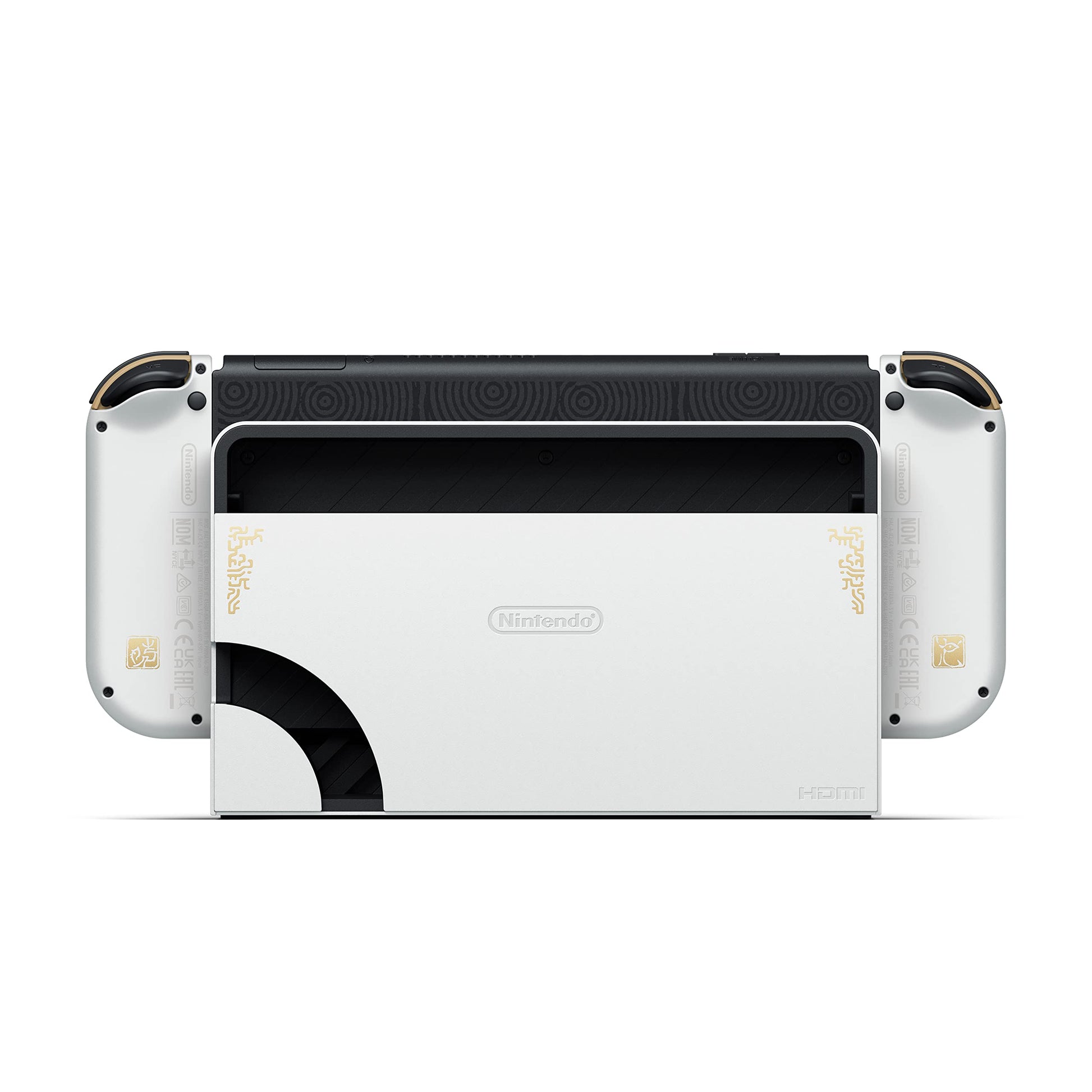 - Q: What is the design inspiration for the Nintendo Switch – OLED Model - The Legend of Zelda: Tears of the Kingdom Edition? A: The design of the Nintendo Switch – OLED Model - The Legend of Zelda: Tears of the Kingdom Edition is inspired by the Legend of Zelda: Tears of the Kingdom game, featuring the iconic Hylian Crest on the front of the dock along with gold illustrations from the game.