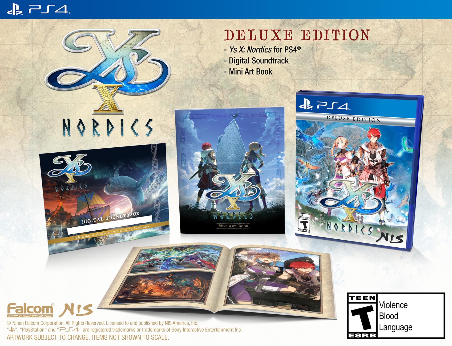 - Q: What is included in the Ys X: Nordics Deluxe Edition for PlayStation 4? A: The Ys X: Nordics Deluxe Edition for PlayStation 4 includes the Ys X: Nordics game, a digital soundtrack download code, and a mini art book.