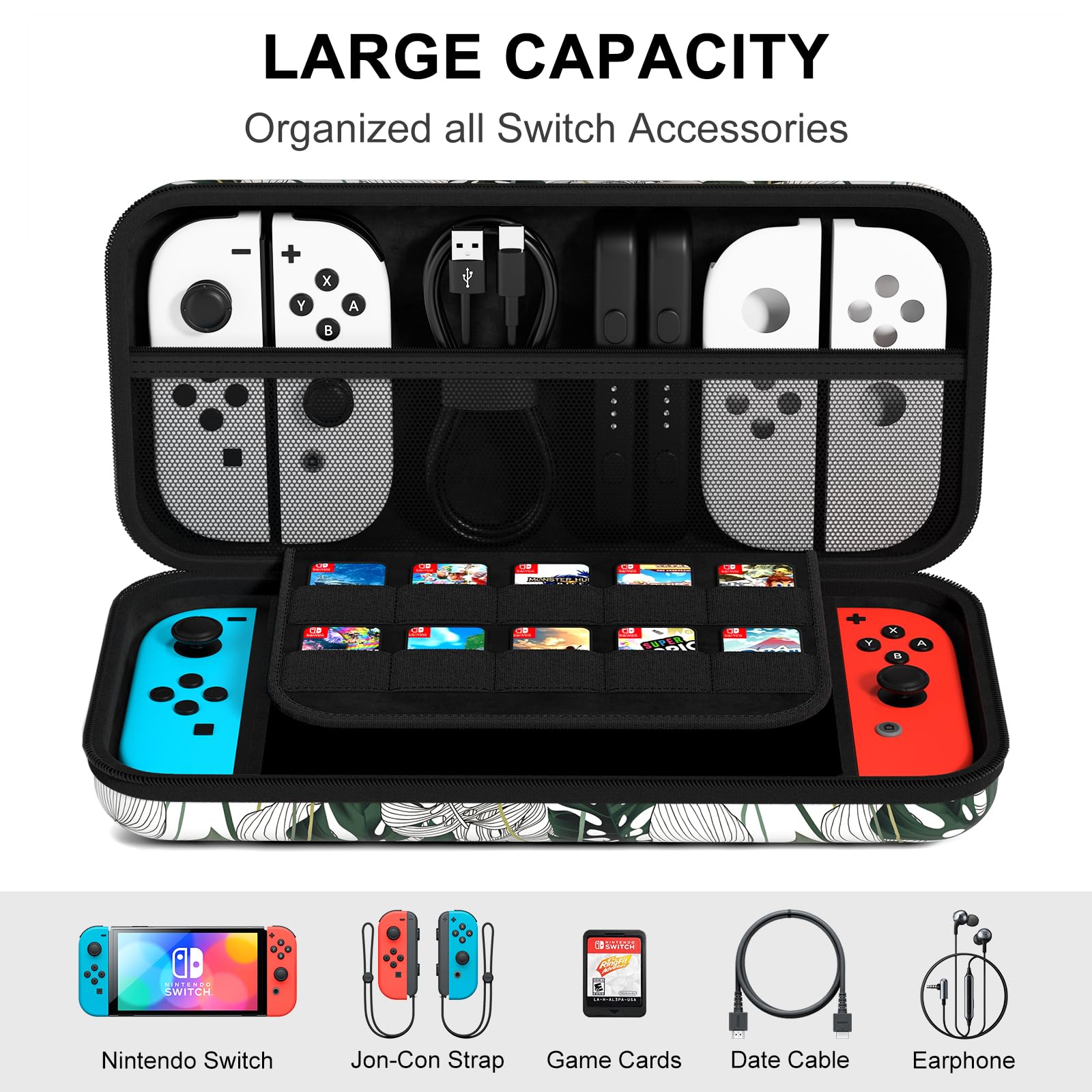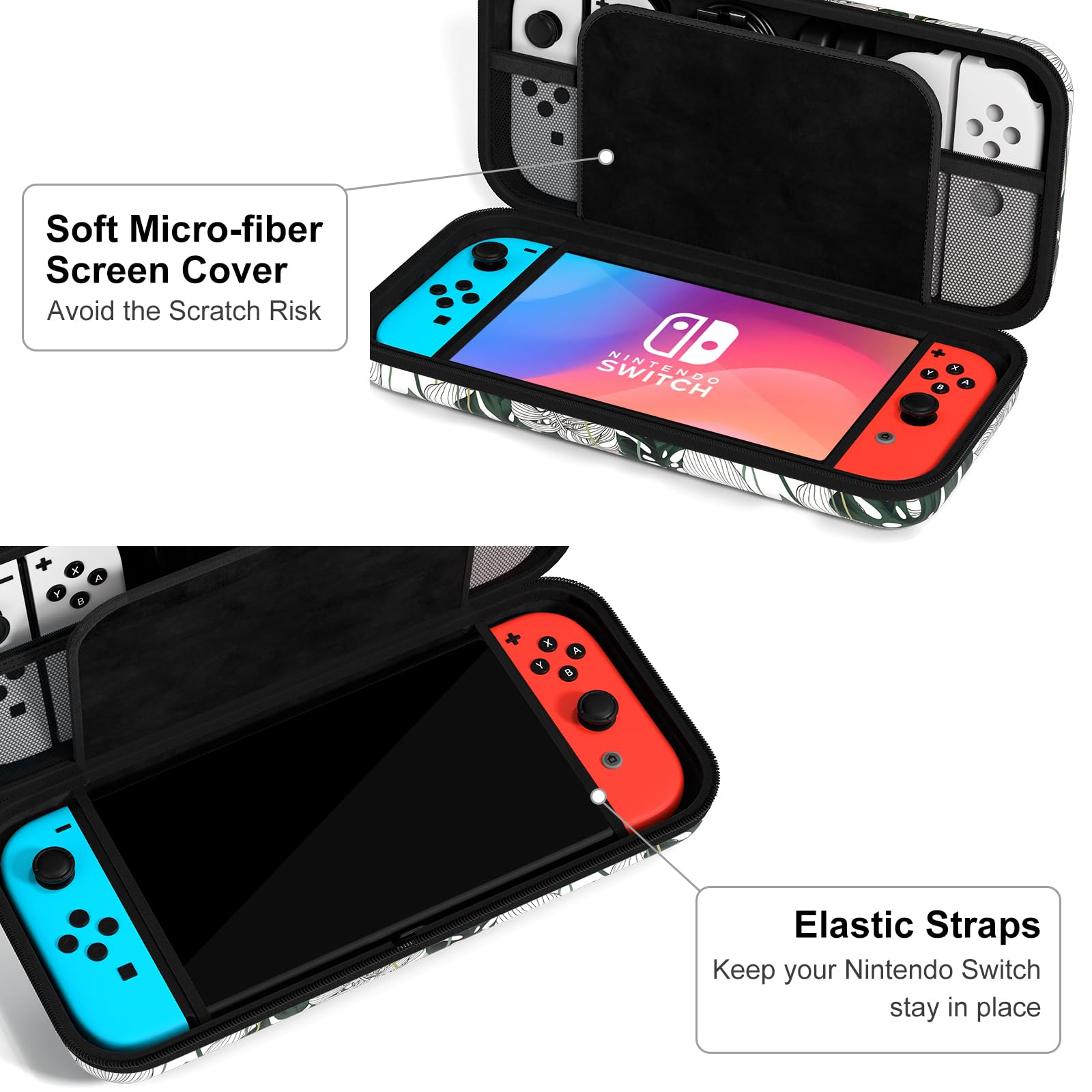 - Q: Does this case provide good protection for the Nintendo Switch? A: Yes, the case offers all-around protection with its hard shell, drop protection, and built-in padding that safeguards the console screen and Joy-Con controllers from scratches and damage.