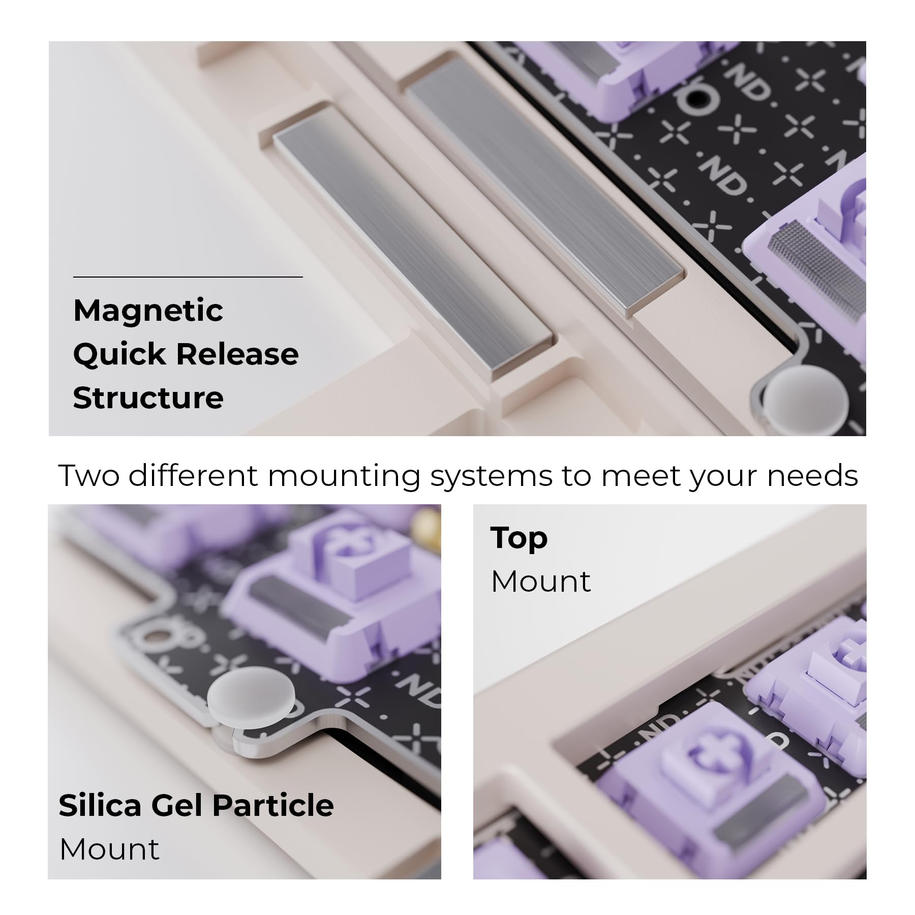 - Q: What type of switches are used in this mechanical keyboard? A: The ND75 LP utilizes self-developed full POM switches, which provide a smooth and responsive typing experience, paired with high-quality double-shot PBT keycaps for durability and longevity.