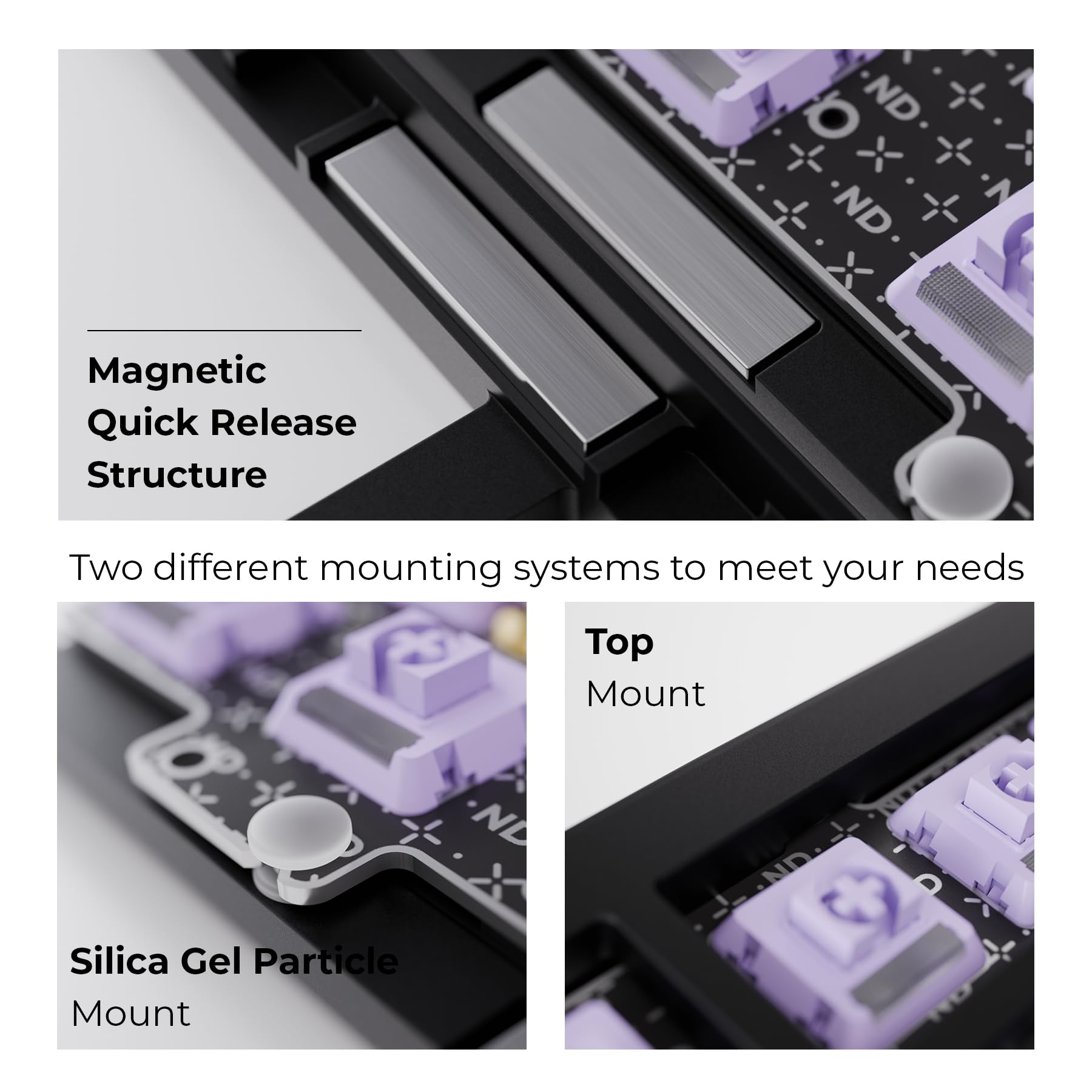- Q: What types of connections does the keyboard support? A: The Chilkey ND75 LP supports wired, wireless, and Bluetooth connections, allowing you to easily connect to various devices such as laptops, tablets, and desktop PCs.