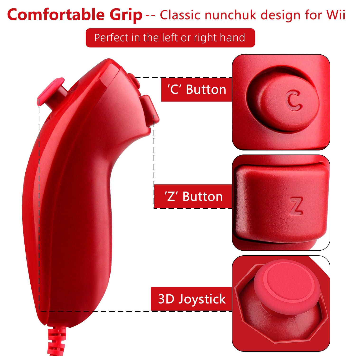 - Q: What color options are available for the OSTENT Nunchuck Controller? A: The OSTENT Motion Based Wired Nunchuck Controller is available in a vibrant red color, adding a stylish touch to your gaming setup.