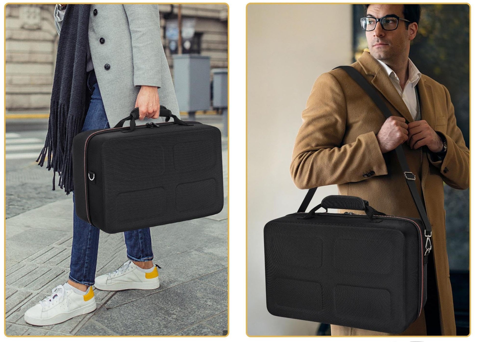 - Q: Does the carrying case have separate compartments? A: Yes, the case features a two-layer design with separate compartments: the upper section accommodates the PS5 console, while the lower section is allocated for controllers and accessories, ensuring they do not scratch each other.